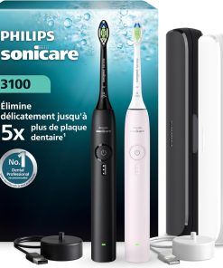 J’ai acheté ce pack de 2 brosses à dents électriques Philips Sonicare 3100 et j’en suis très satisfait : design moderne rose pastel et noir, technologie sonique plus efficace qu’une brosse manuelle, capteur de pression utile pour protéger dents et gencives, minuterie pour un brossage complet, batteries durent longtemps et se rechargent rapidement. Je recommande ce produit pour améliorer l’hygiène buccale au quotidien.