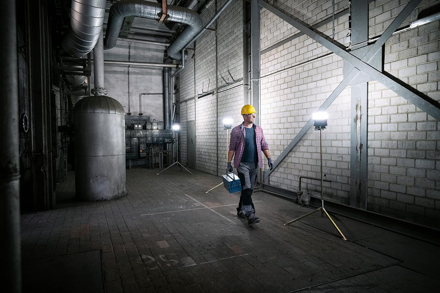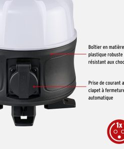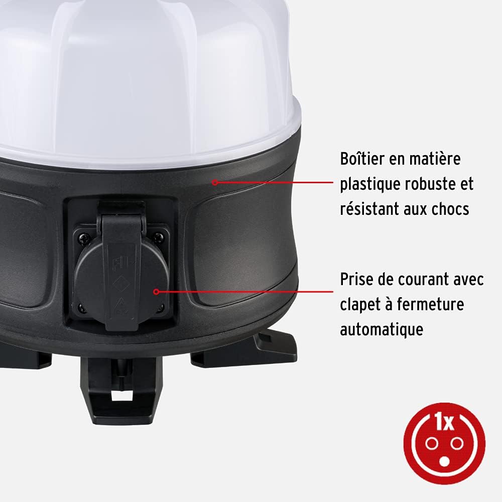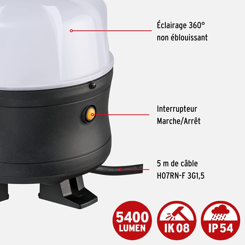 Brennenstuhl Projecteur LED BF 5051 M 360° portable/Projecteur de chantier 50W (lampe de chantier 5400lm, 5m de câble, prise de courant avec clapet, pour une utilisation en extérieur, IP54)