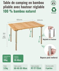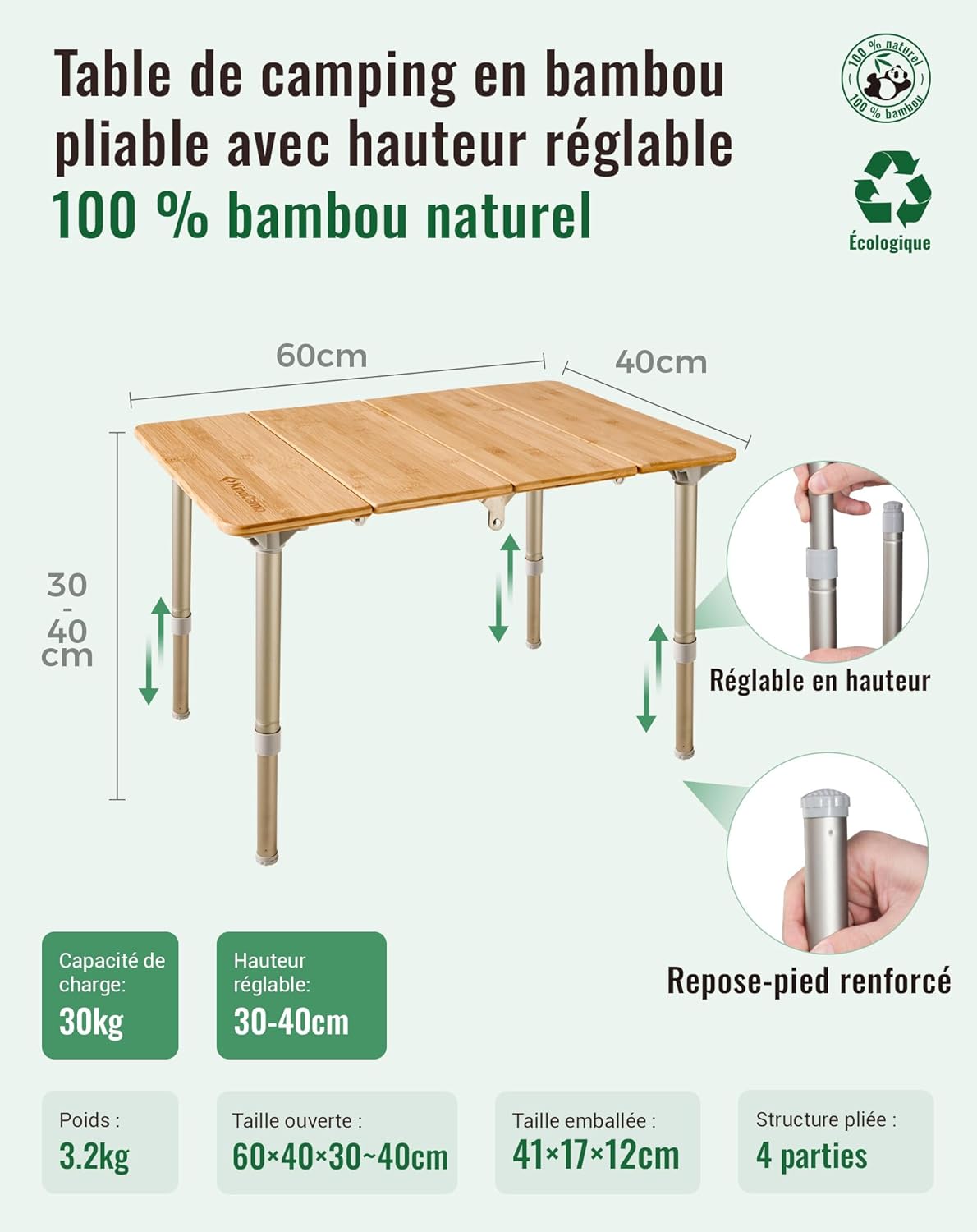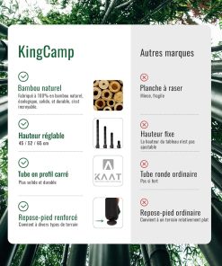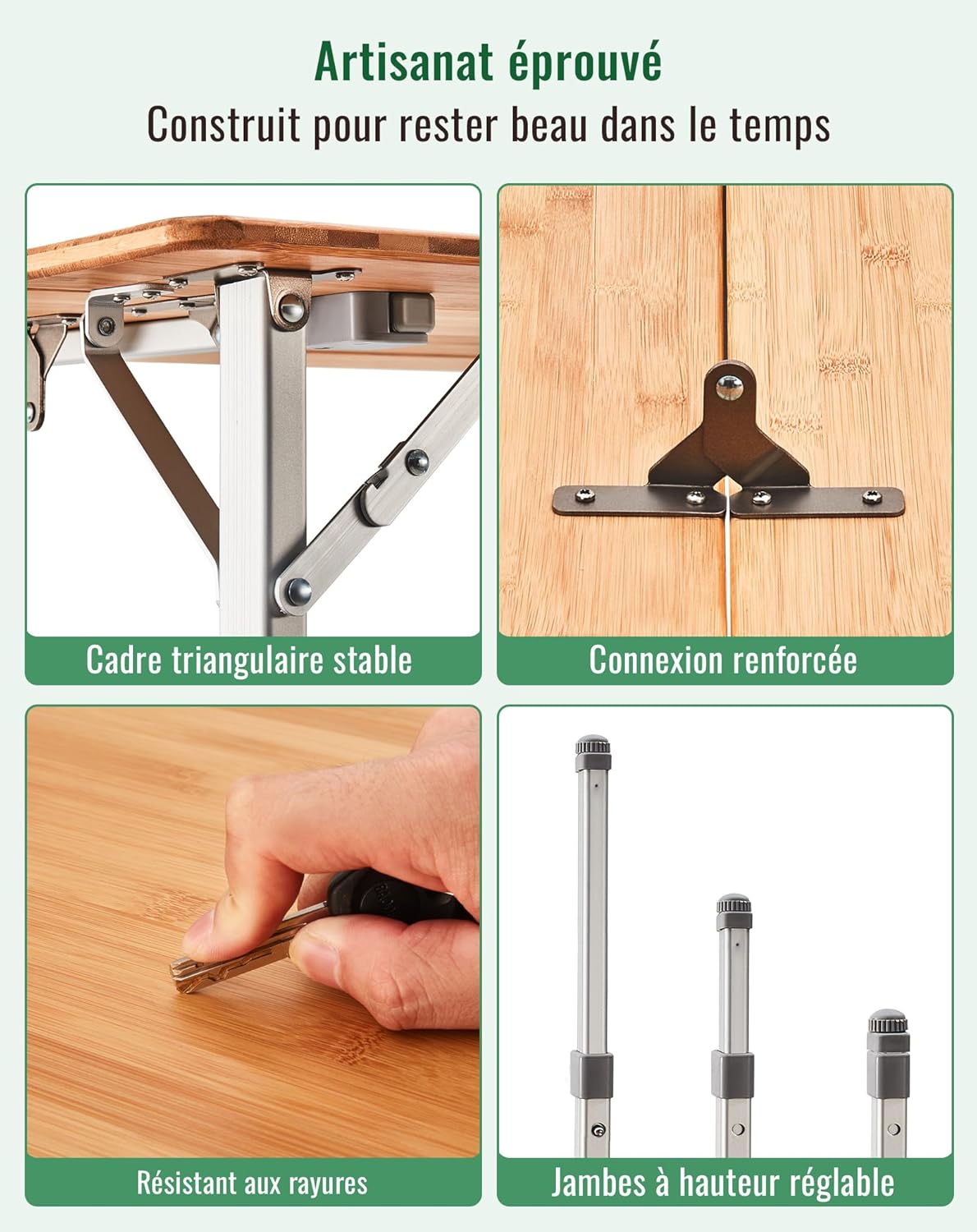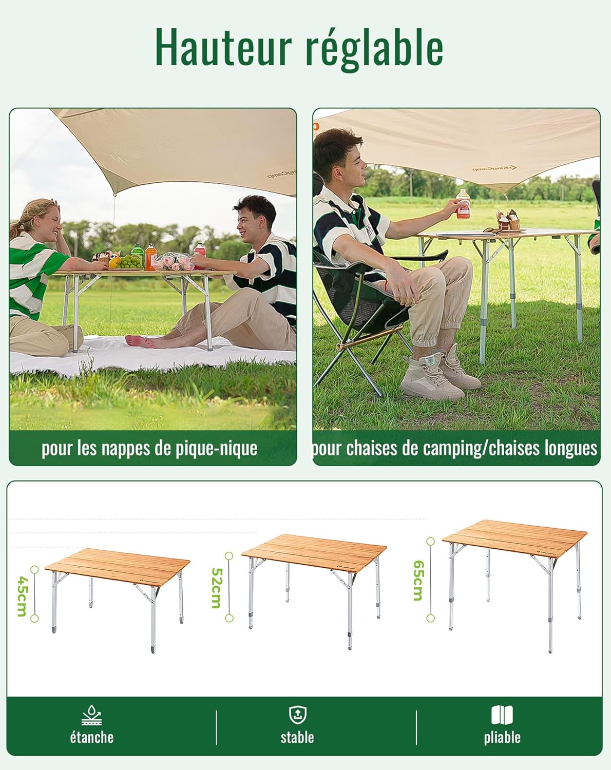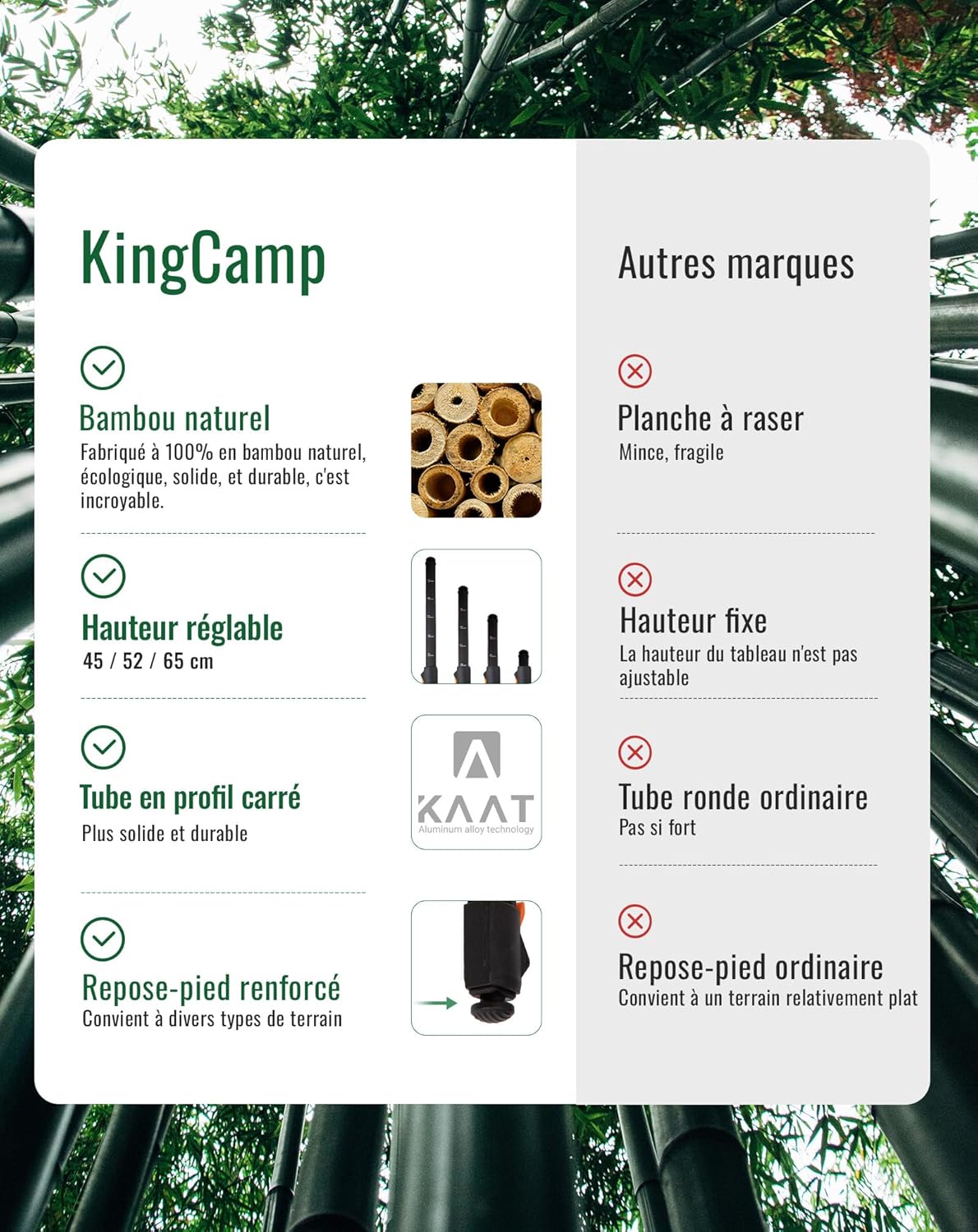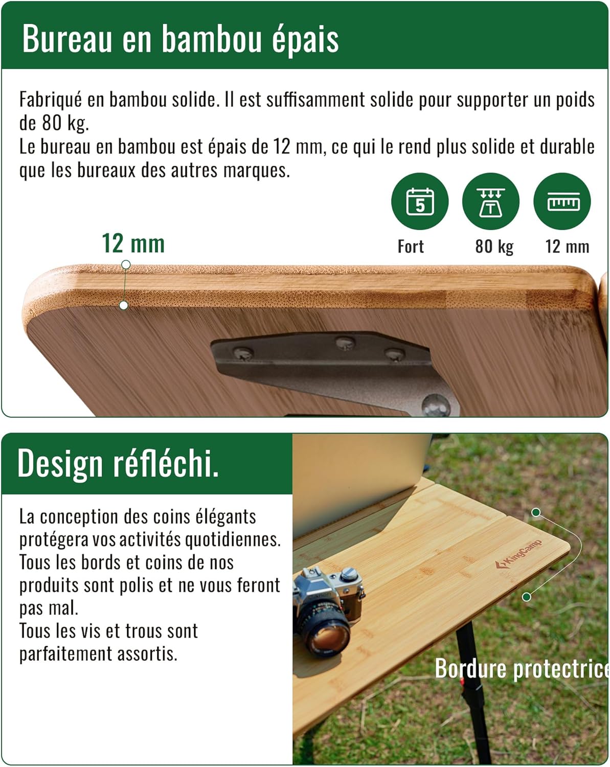 - 【𝐆𝐚𝐫𝐚𝐧𝐭𝐢𝐞】 Nous garantissons notre qualité et voulons que vous aimiez notre table en bambou KingCamp. Si vous avez une qualité problèmes, veuillez nous envoyer un e-mail et nous vous répondrons dans les 24 heures.