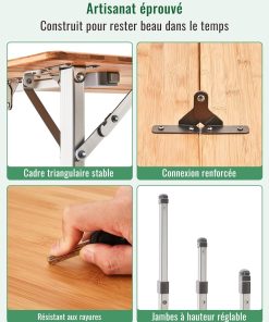 - 【𝐇𝐚𝐮𝐭𝐞 𝐐𝐮𝐚𝐥𝐢𝐭é & É𝐜𝐨𝐥𝐨𝐠𝐢𝐪𝐮𝐞】Le plateau de table pliant 60 x 40 cm, en bambou naturel de haute qualité, résistant aux UV et imperméable. Le matériau est écologique et durable, ce qui vous donnera un bon rapport qualité-prix pour votre utilisation.