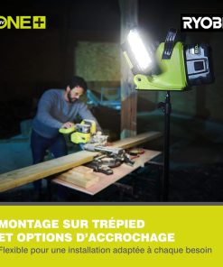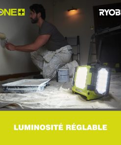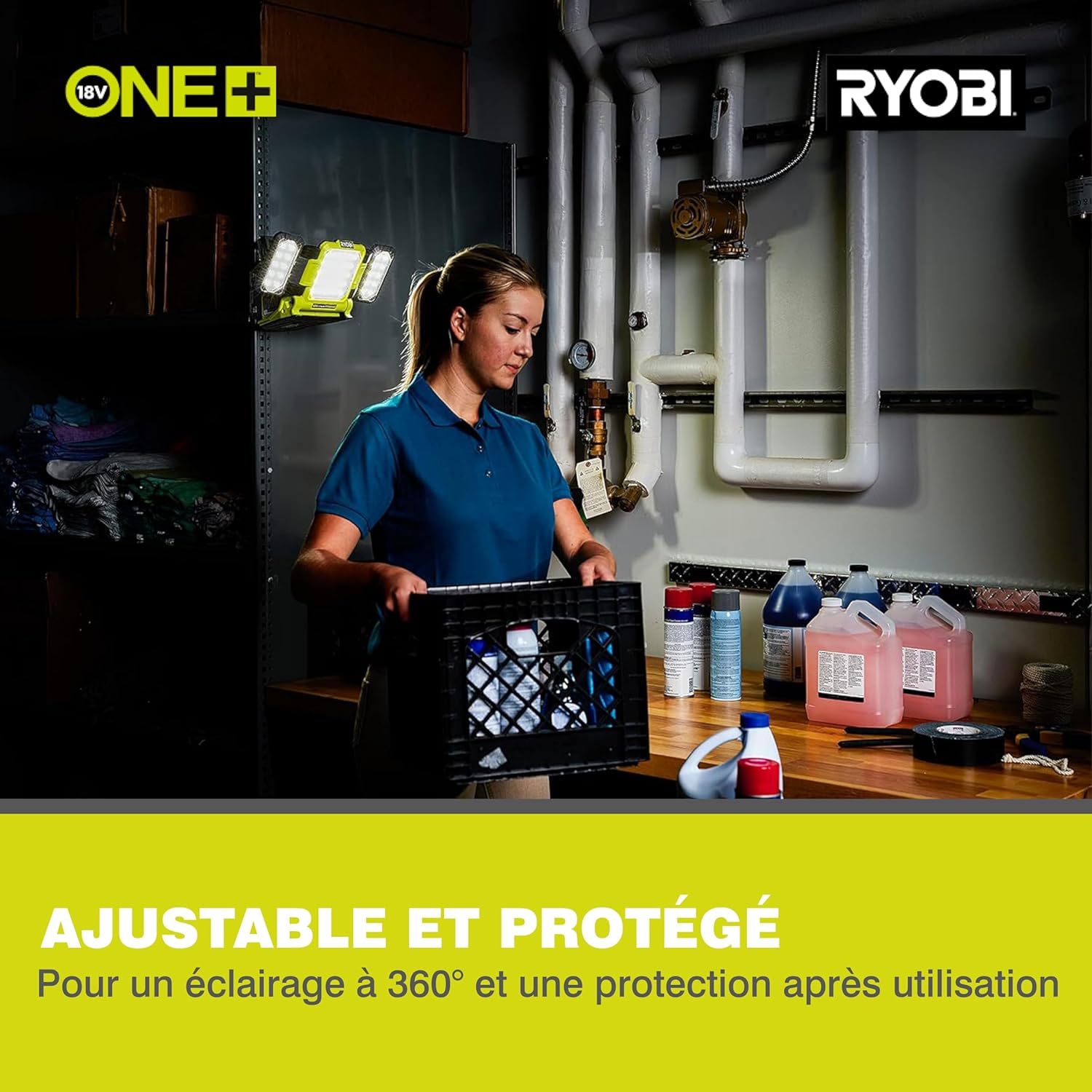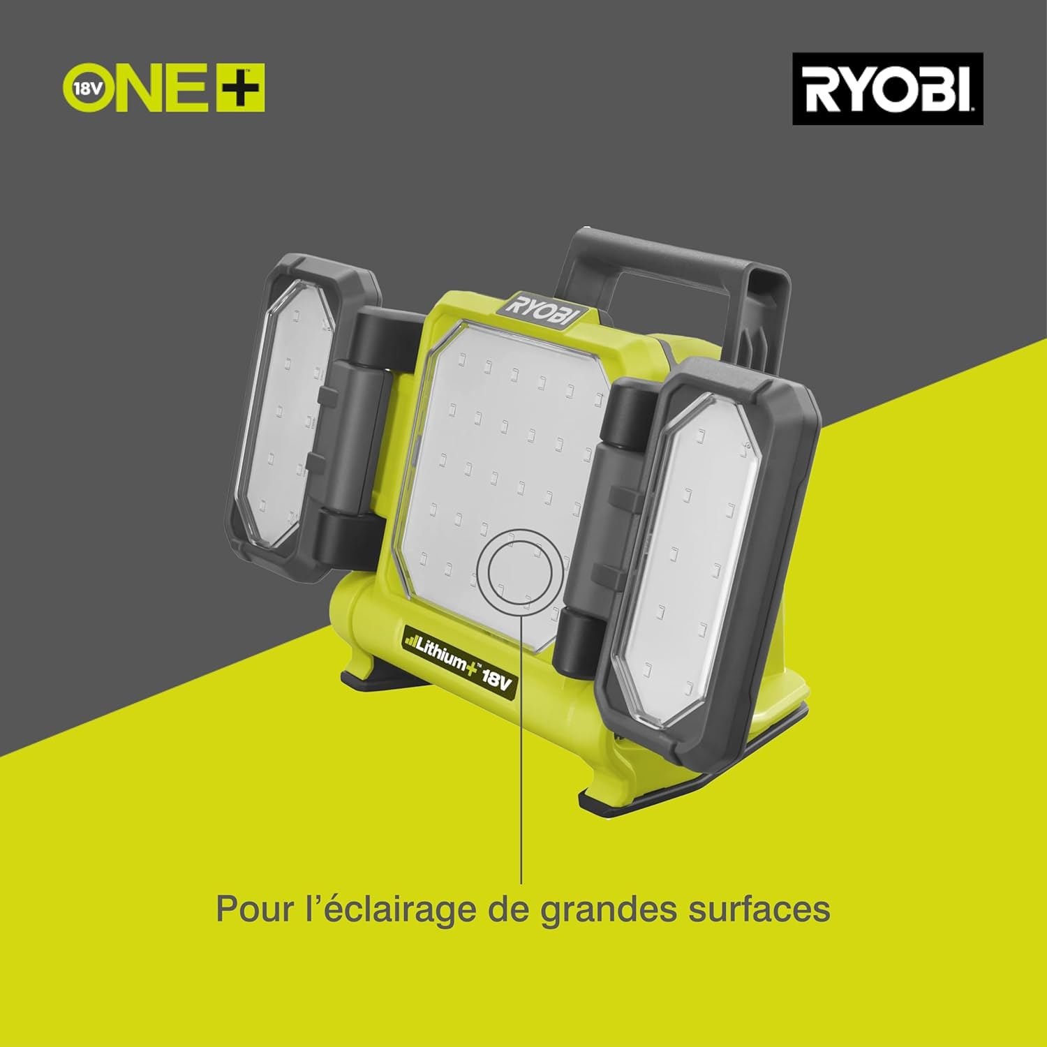 RYOBI – Lampe Triple panneau lumineux LED Sans Fil 18V ONE+ RLP18-0 – Tête Orientable, montage trépier possible, Compacte – Idéale Chantier, Garage, travaux peinture – Batterie Non Incluse