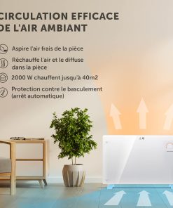 Radiateur Électrique à Thermostat Aurora Intérieur – Radiateur Électrique Mobile – Économique à Convecteur – Chauffage Électrique Inertie 2000w