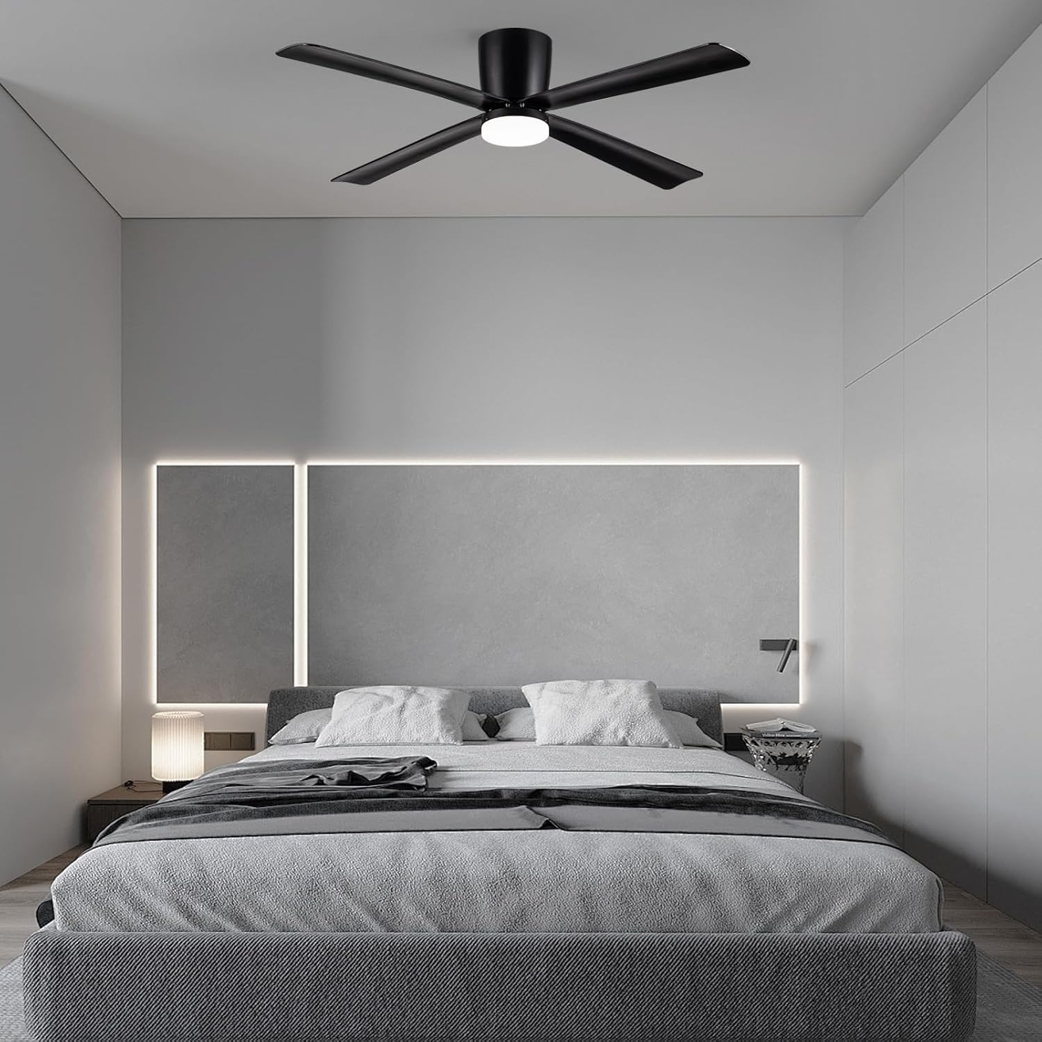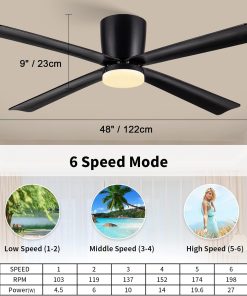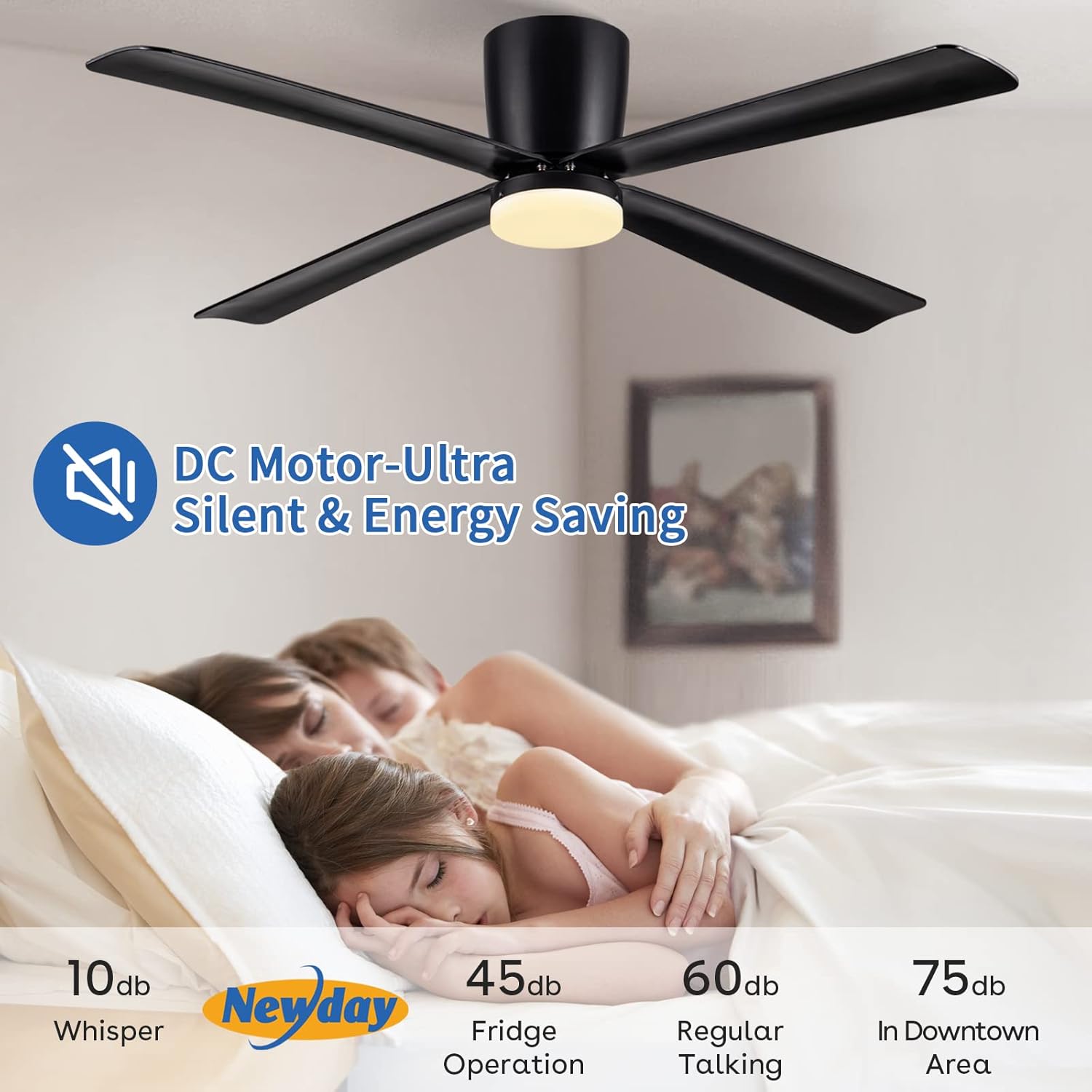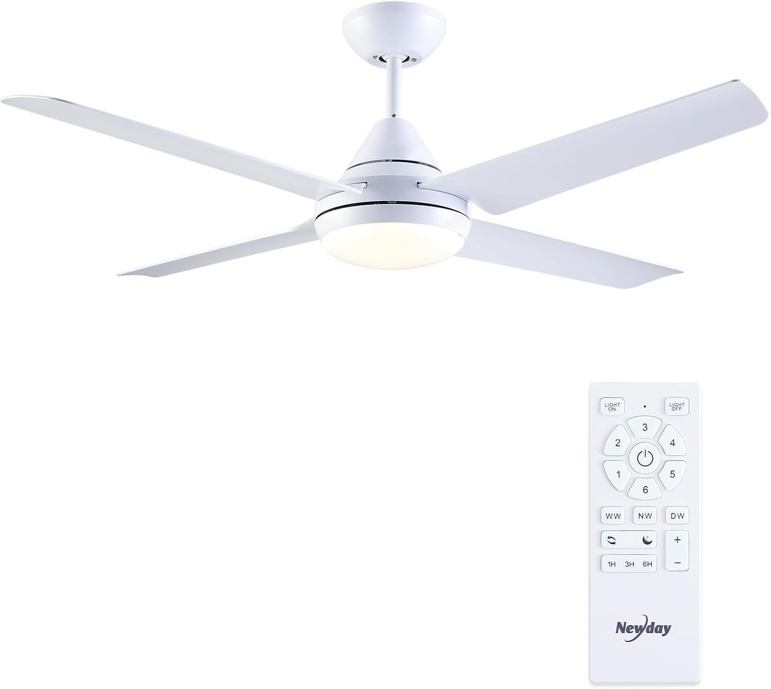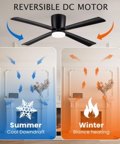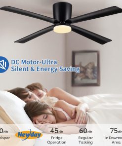 Newday Ventilateur de Plafond avec Lumiere et Télécommande Noir, 122cm Ventilateur de Plafond avec Lampe LED, Ventilateur Plafonnier Silencieux 4 Pales Pour Chambre Salon Bureau Cuisine, DC Moteur