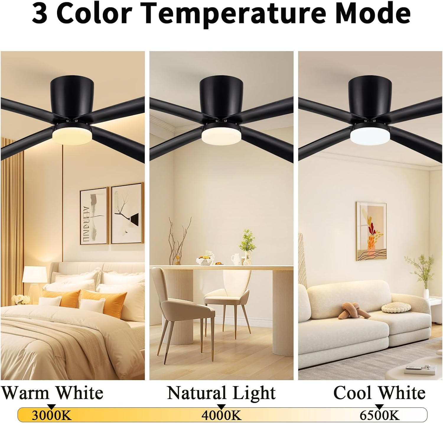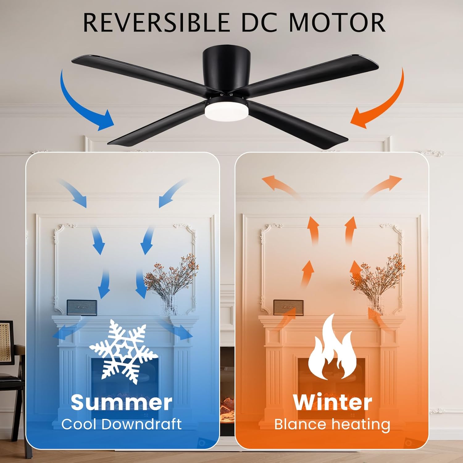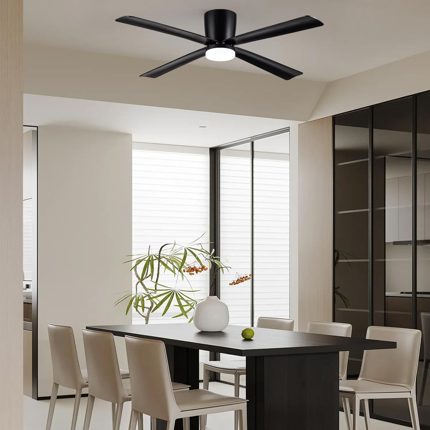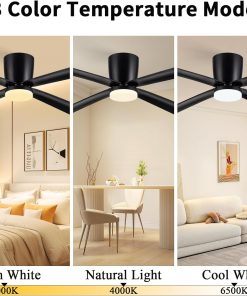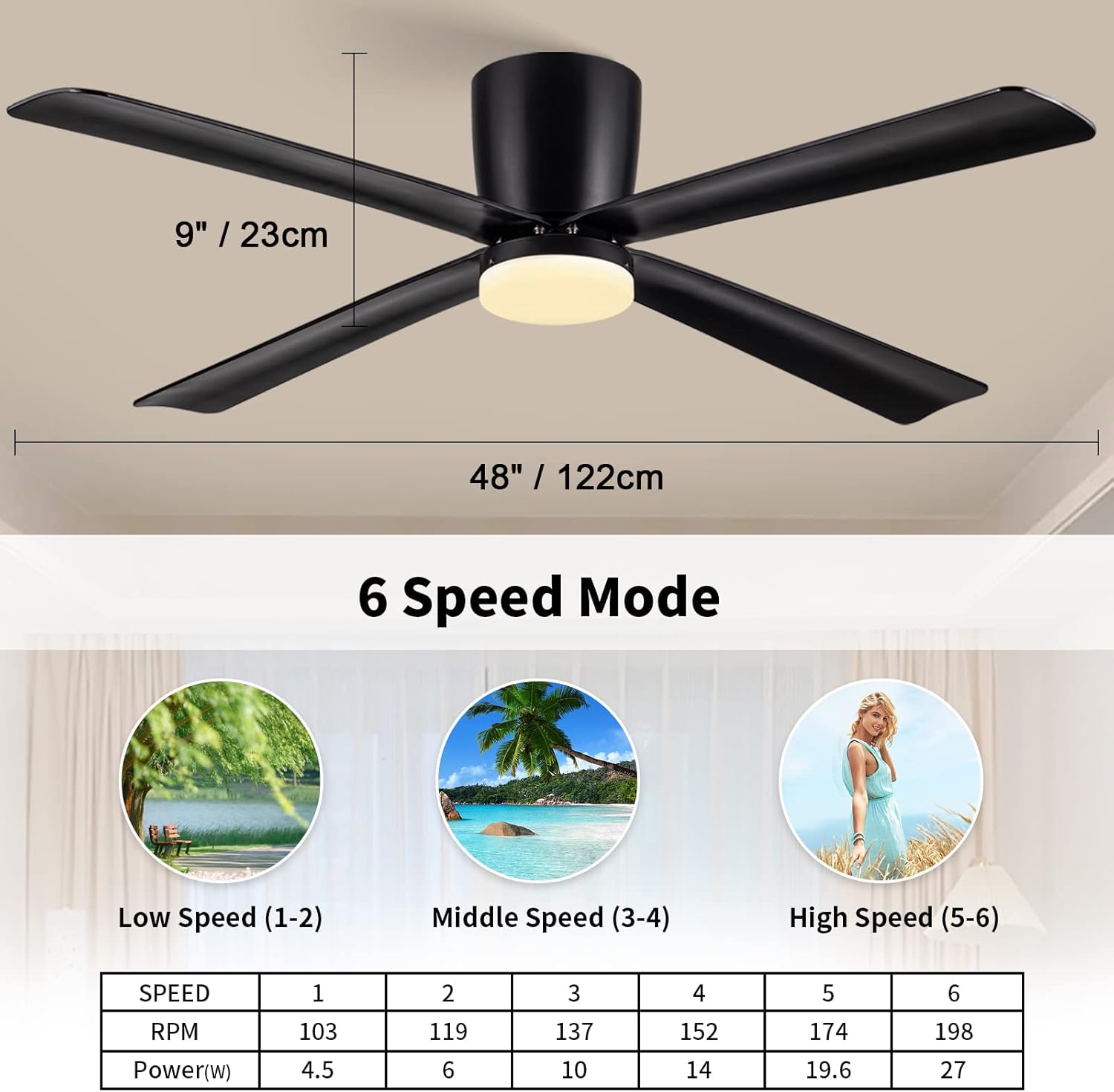 Newday Ventilateur de Plafond avec Lumiere et Télécommande Noir, 122cm Ventilateur de Plafond avec Lampe LED, Ventilateur Plafonnier Silencieux 4 Pales Pour Chambre Salon Bureau Cuisine, DC Moteur
