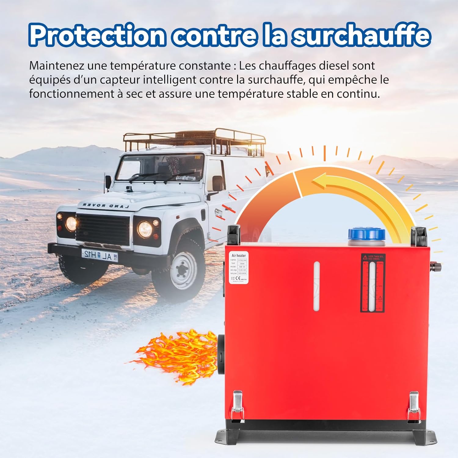 - Large application – Ce chauffage d’air diesel polyvalent convient pour chauffer l’habitacle de divers véhicules : voitures, camions, camping-cars, fourgons, véhicules techniques, bateaux, autocaravanes, garages, etc. Indispensable pour les voyages en hiver, il vous apporte chaleur et confort où que vous alliez !