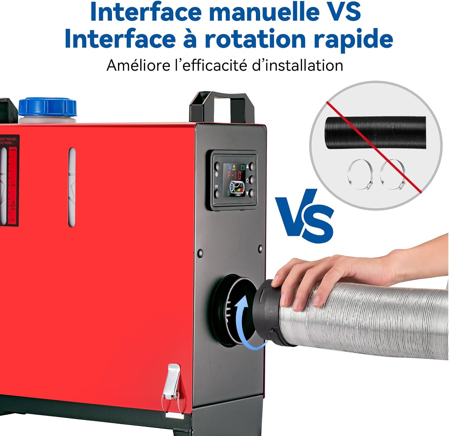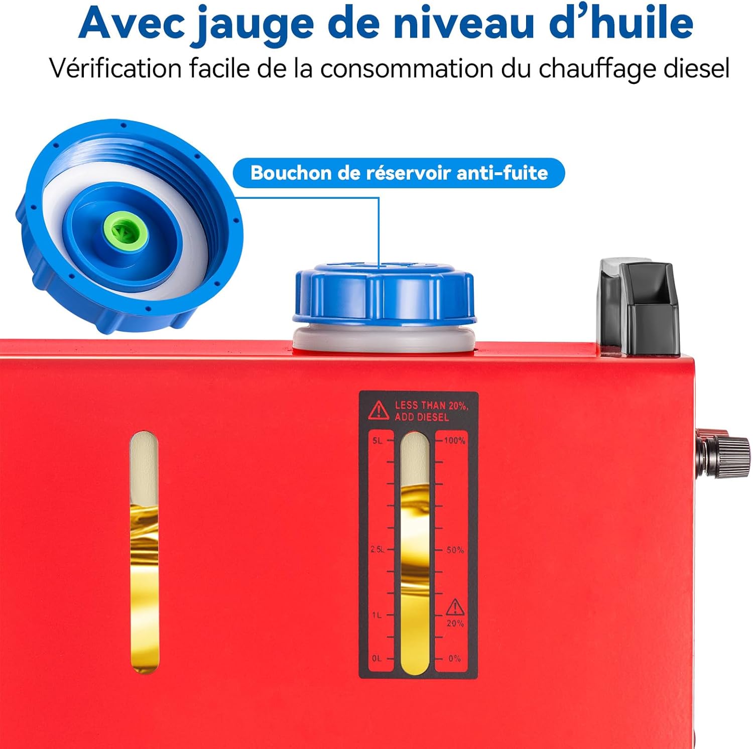 - FAIBLE CONSOMMATION D’ÉNERGIE – Consommation de carburant : 0,1-0,25L/H (0,03-0,07gal/h). Notre chauffage diesel se distingue par une consommation de carburant et d’électricité très basse, idéale pour une utilisation prolongée. Restez au chaud les jours d’hiver et dégivrez vos vitres sans effort.