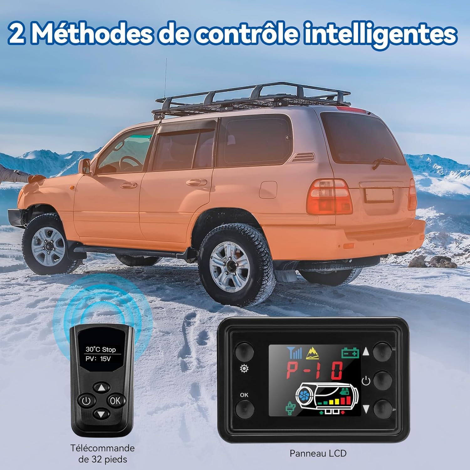 - Chauffage rapide – La télécommande permet l’allumage/extinction et le préchauffage à distance, garantissant un intérieur chaud à votre arrivée. Réglage de la quantité de carburant, de la température et de la vitesse du vent. Monte en température en 10 minutes pour éviter le givrage du pare-brise. Écran LCD de contrôle protégé par un film.