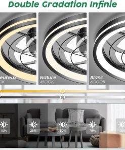 - Installation Sans Effort: Lorsque vous prenez vos outils et vous préparez à installer le plafonnier ventilateur de plafond, vous serez surpris de sa facilité. Notre méthode d’installation rentable peut être réalisée par une seule personne. Nos lampe ventilateur LED combinent un design élégant et moderne avec une polyvalence, ajoutant une touche artistique à des pièces de 7 à 10 m² telles que les chambres à coucher, les chambres d’enfants, les bureaux à domicile et les cuisines