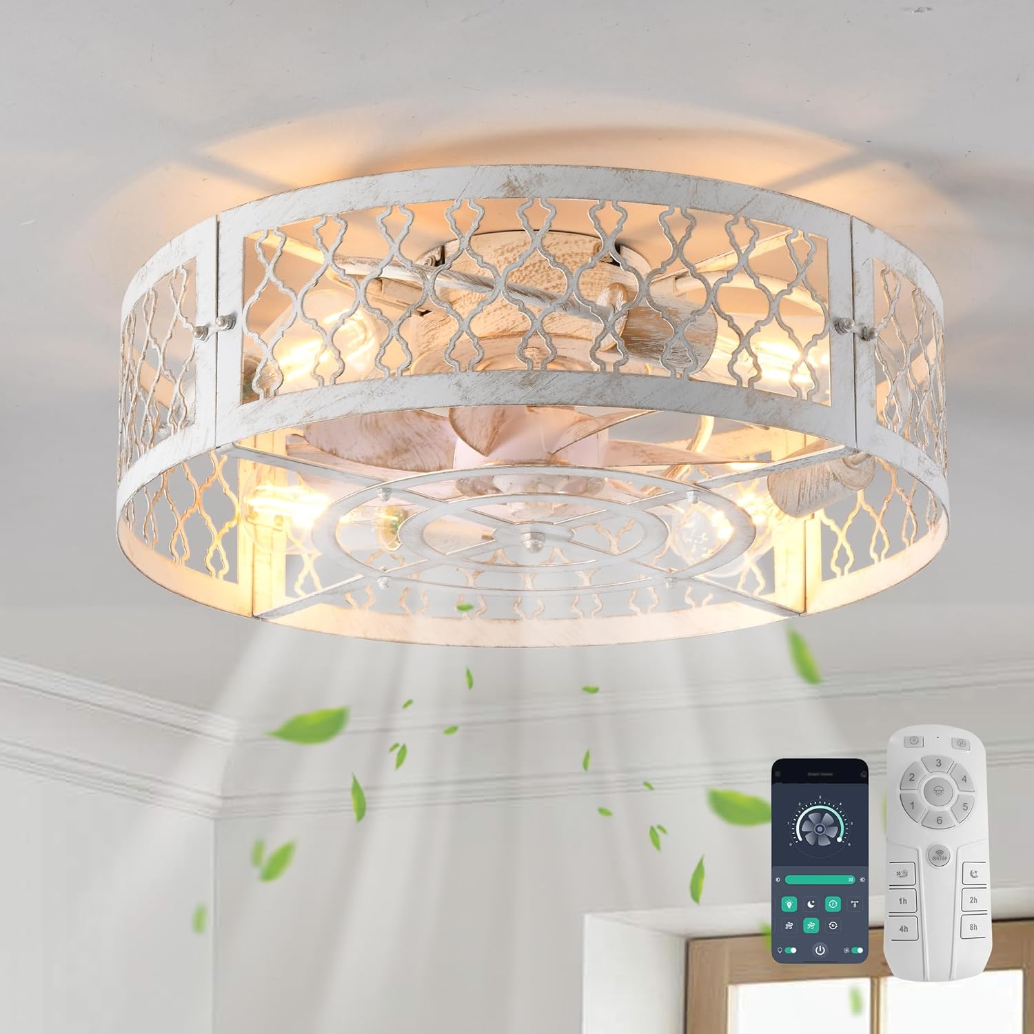 - [ Taille de la lumière du ventilateur ] – Diamètre du luminaire : 50 cm / 19,7 pouces, hauteur : 21 cm / 8,2 pouces. Diamètre de l’auvent du plafond : 15 cm / 5,9 pouces, hauteur : 6,5 cm / 2,6 pouces. Tension applicable : 110 – 240 volts. Recommandé 4 x E27, Max. 60 Watt chaque ampoule (NON incluse). L’éclairage n’est pas dimmable.