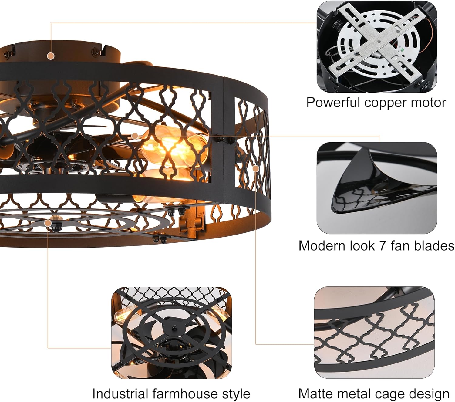 - [ Économie d’espace ] – Le combo de ventilateur d’éclairage encastré donne l’impression que les pièces ont un plafond plus élevé, un excellent remplacement pour les grands ventilateurs de plafond encombrants. Le design industriel avec une finition laquée noire mate rustique contribuera à une atmosphère chaleureuse et invitante, rehaussant l’attrait esthétique général de votre espace.
