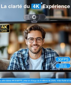 - CLARTÉ 4K UHD CMOS 6P : cette webcam pc offre une résolution 4K, 2K, 1080p et un taux de rafraîchissement de 30 FPS pour répondre à tous vos besoins en matière de qualité d’image. Le capteur CMOS améliore les couleurs et la résolution tout en économisant de l’énergie. L’objectif 6P avancé améliore la clarté, réduit la distorsion et garantit une qualité d’image constante pour vous aider à attirer l’attention et à renforcer votre confiance