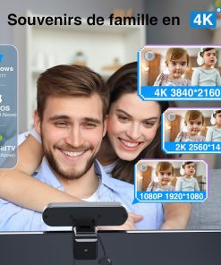 - Grand angle et mise au point fixe : cette web cam 4k offre un grand angle réglable de 60° à 98° et une mise au point fixe qui fournit des images claires et stables. Webcam idéale pour les réunions de groupe. Capturez l’intégralité de l’espace et assurez-vous que tout le monde s’intègre dans le cadre, que ce soit dans des espaces petits ou grands, améliorant ainsi l’inclusion et la communication. La mise au point fixe élimine le besoin de réglages manuels fréquents