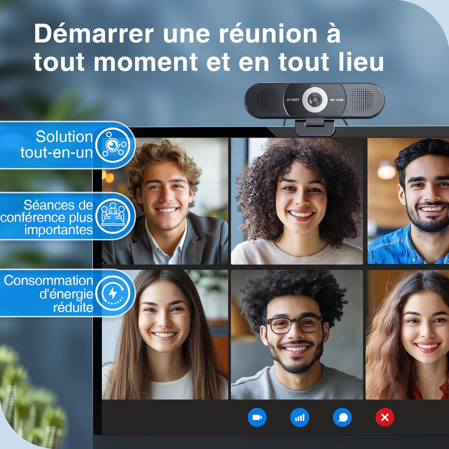 - Webcam 4K tout-en-un : la webcam 4K EMEET C980 PRO avec microphone et haut-parleur comprend un objectif 4K, un réseau de 4 microphones et 2 haut-parleurs AI. La EMEET 1080p webcam offre une expérience audiovisuelle inégalée. Le microphone capture un son clair jusqu’à 3 m de distance et filtre le bruit de fond, tandis que les 2 haut-parleurs offrent un son riche, clair et à faible distorsion. Vous pouvez démarrer rapidement une réunion dans n’importe quel environnement