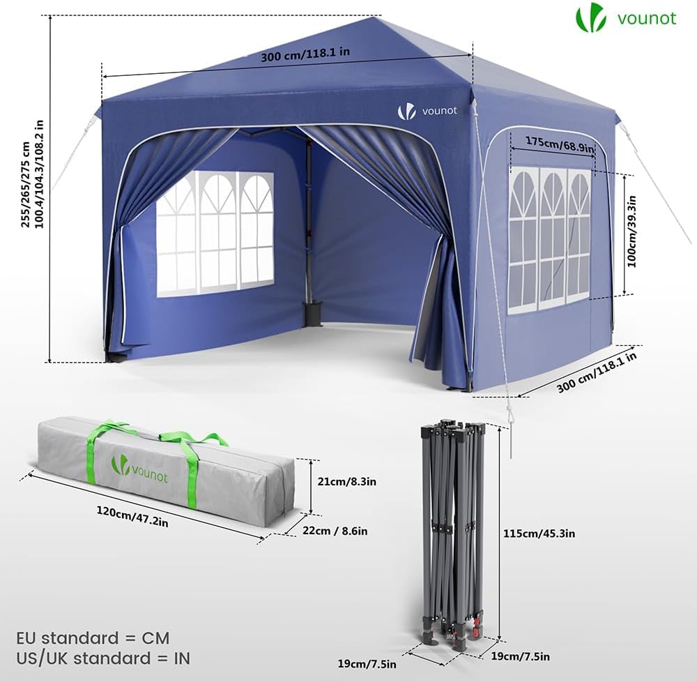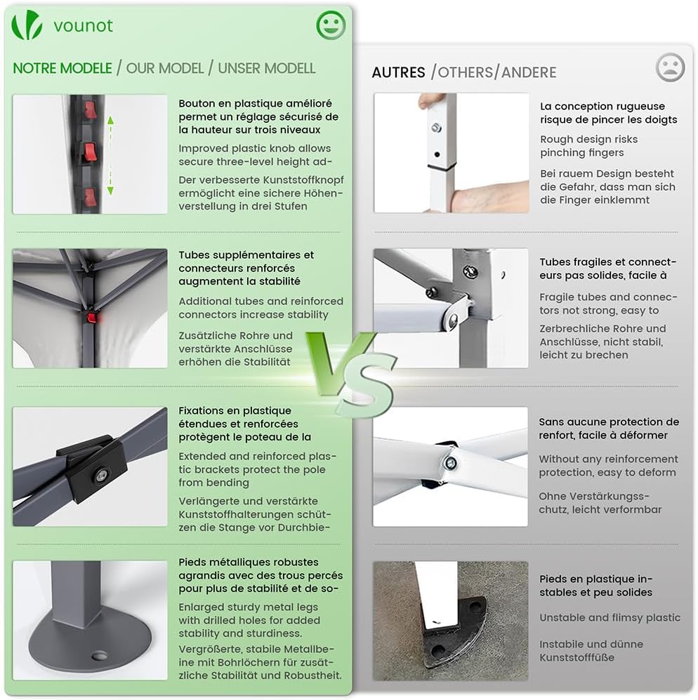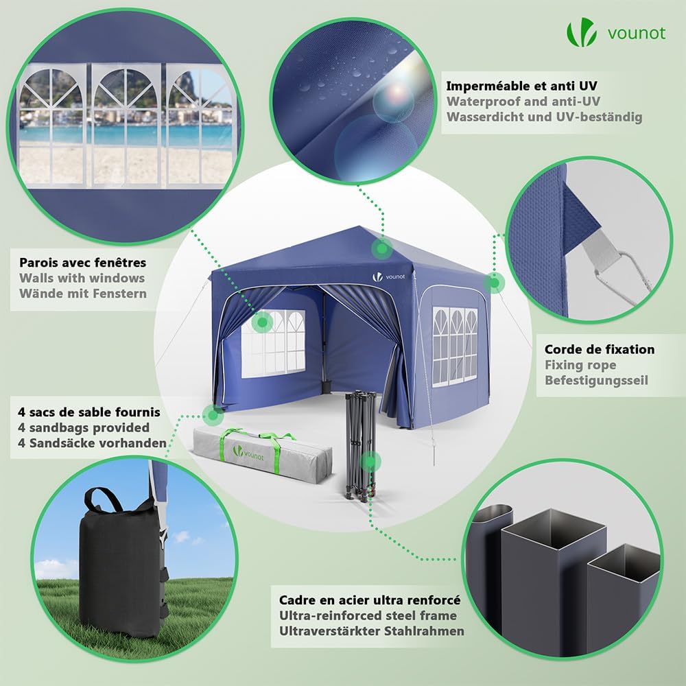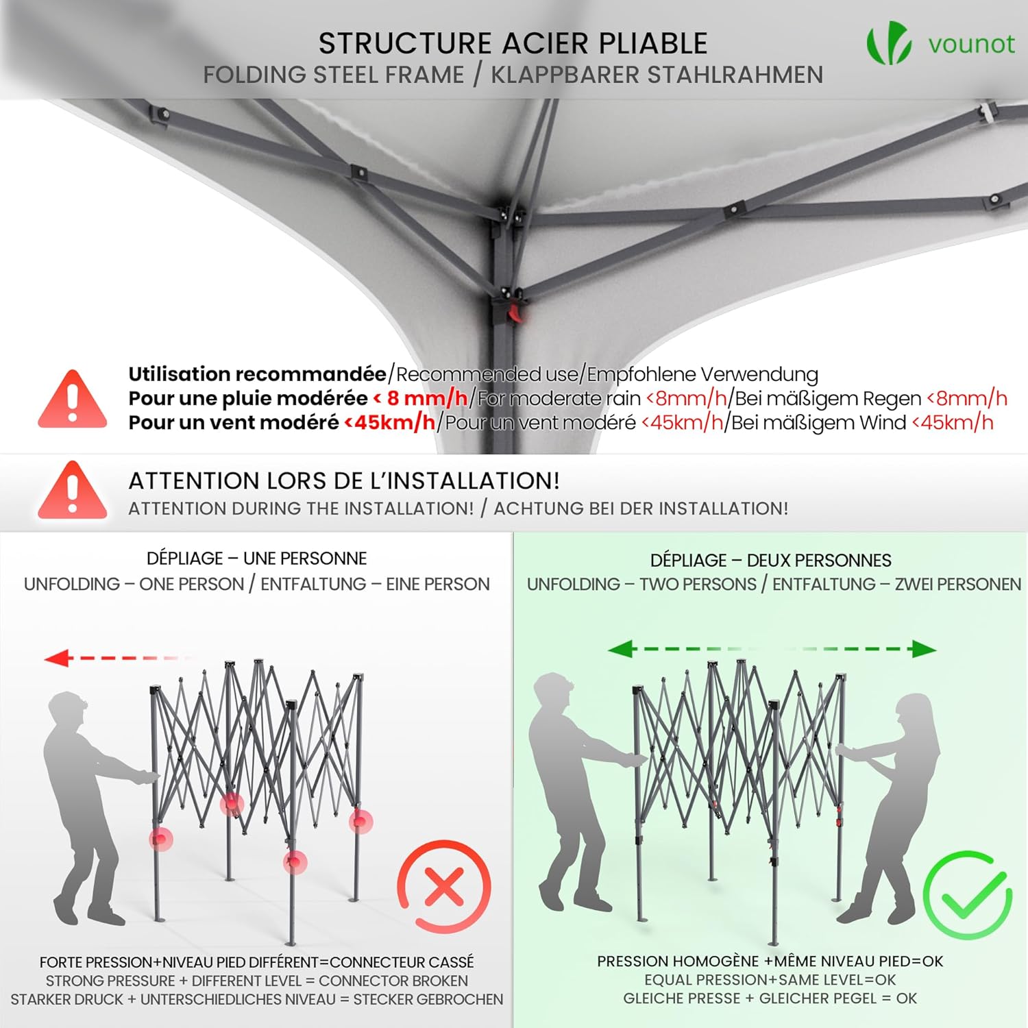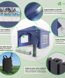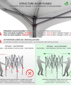 - INSTALLATION FACILE ET RAPIDE : Conçue avec un système pliable, notre tonnelle 3x3M se monte et se démonte facilement, sans effort ni outil. Sa conception pop-up intuitive permet une installation rapide, idéale pour vos événements en extérieur. Elle offre une solution pratique et efficace pour créer un espace abrité et convivial.