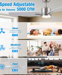 - 【Mode Eté – Hiver】- ce ventilateur de plafond réversible dispose d’un mode été – hiver qui peut être utilisé toute l’année pour économiser sur les coûts d’énergie. Les ventilateurs de plafond tournent dans le sens antihoraire en été pour refroidir le courant d’air coulé et dans le sens horaire en hiver pour chauffer le courant ascendant.