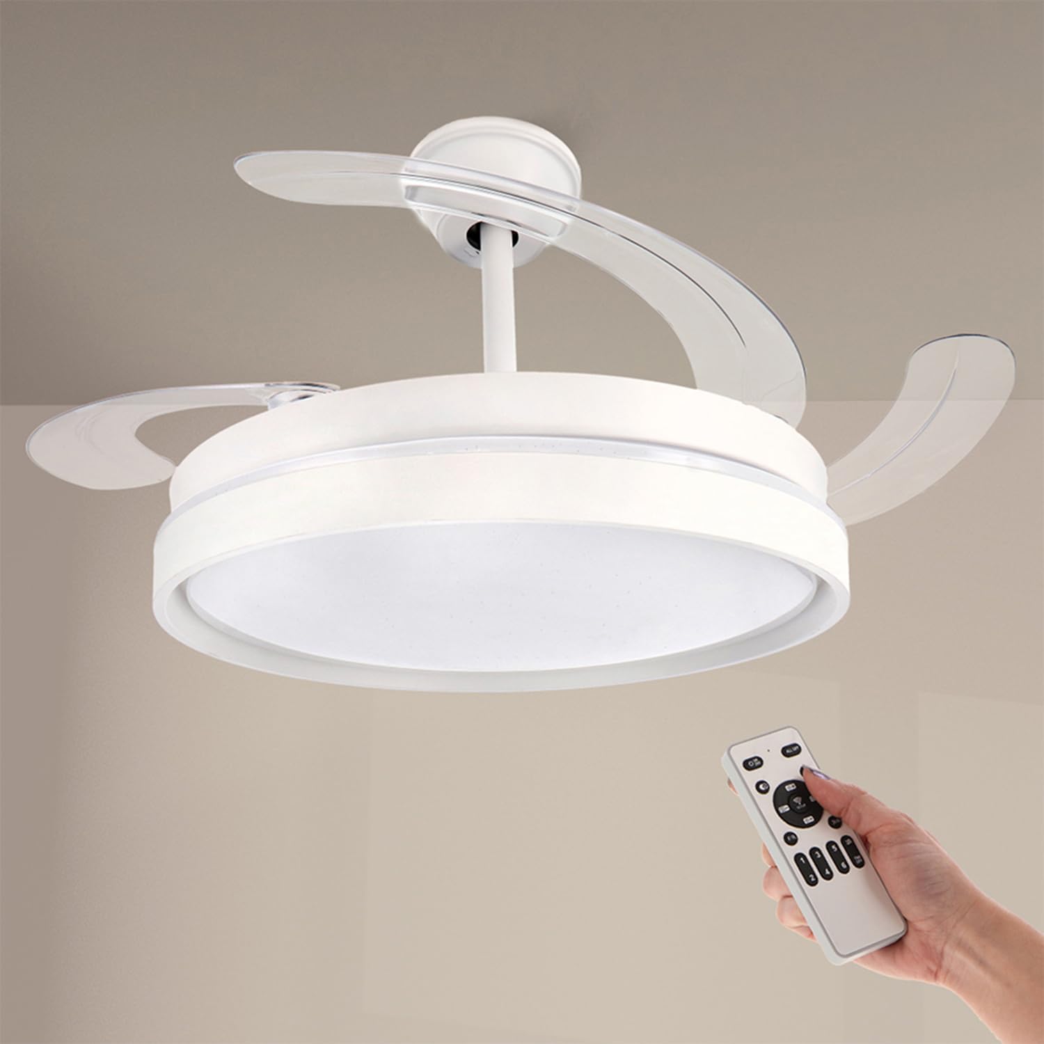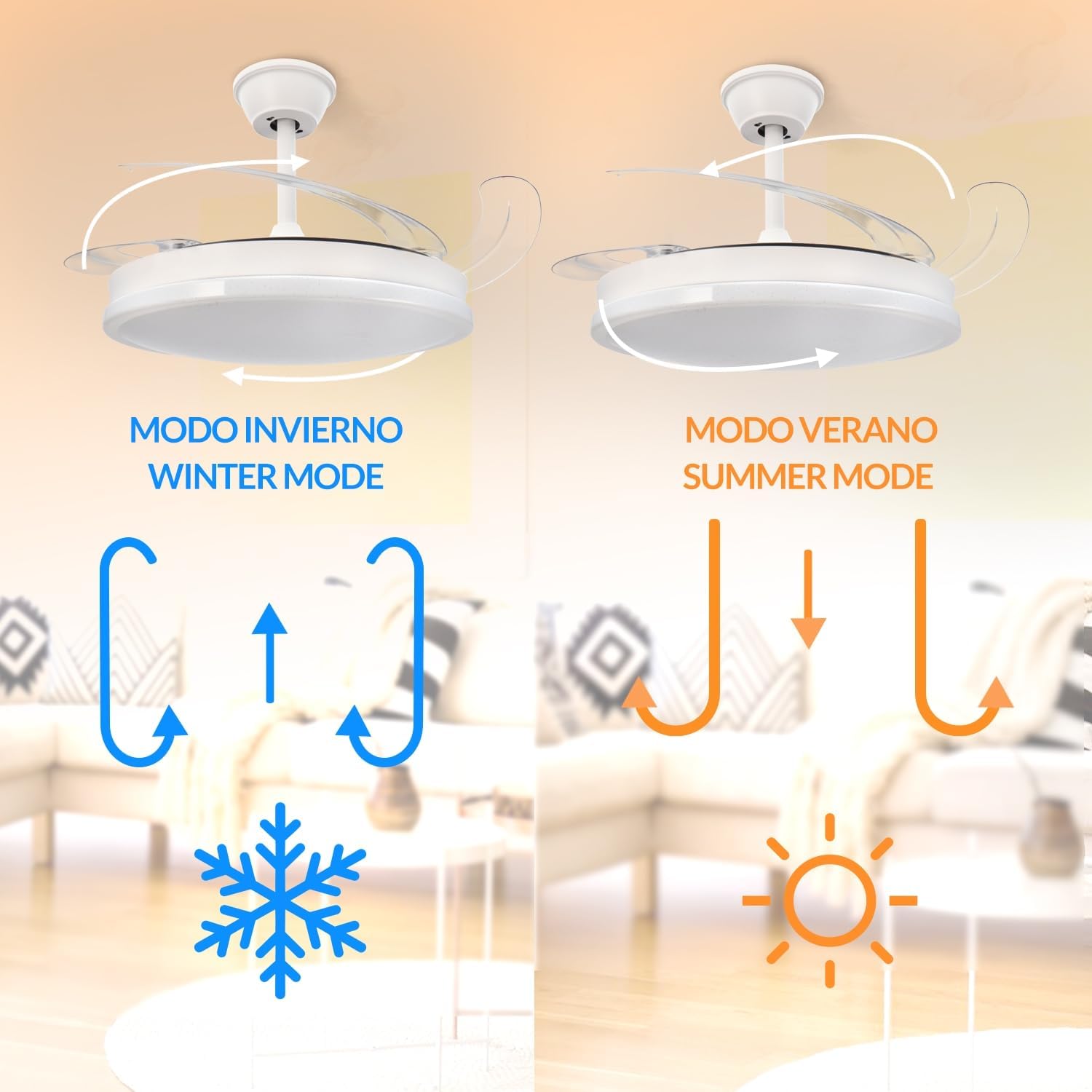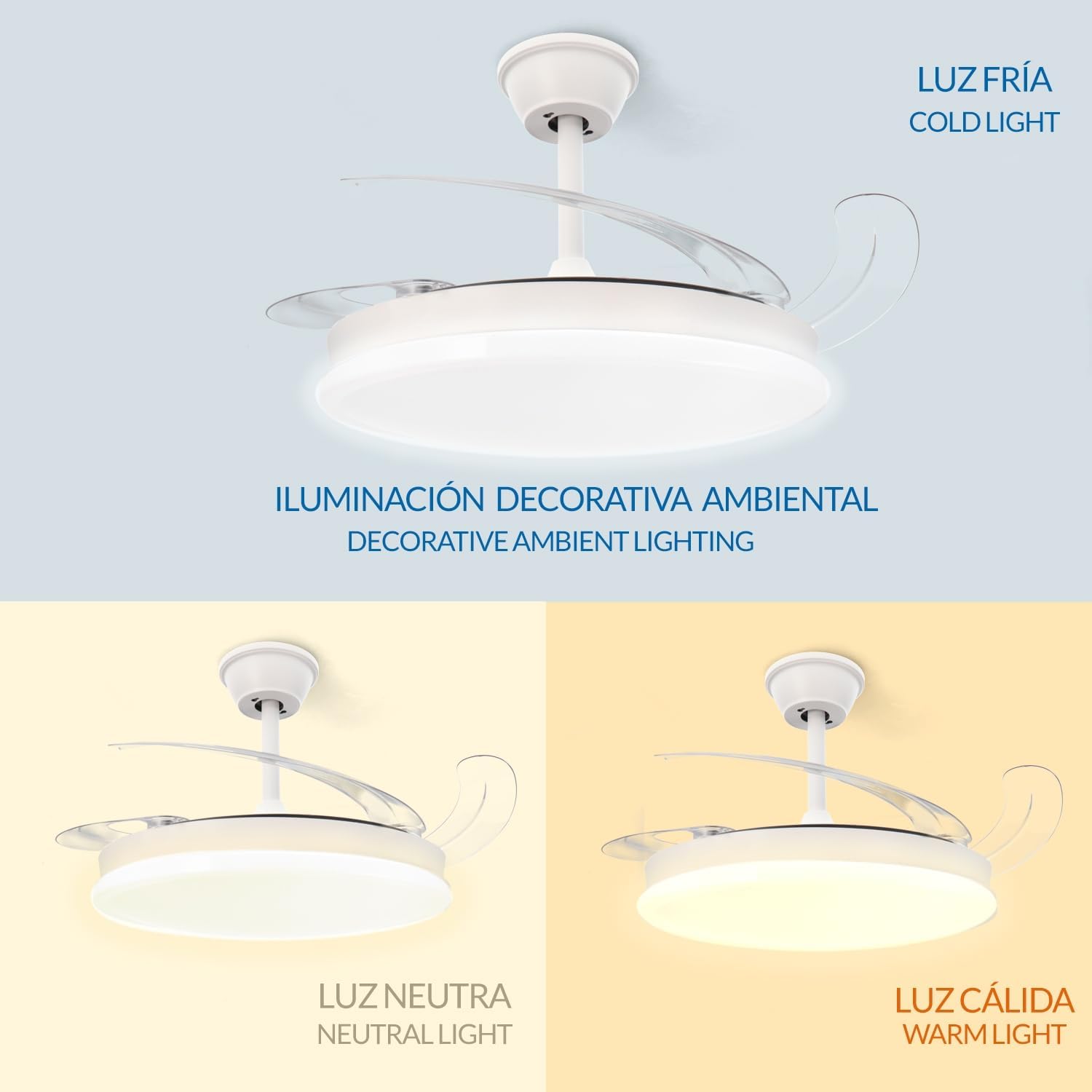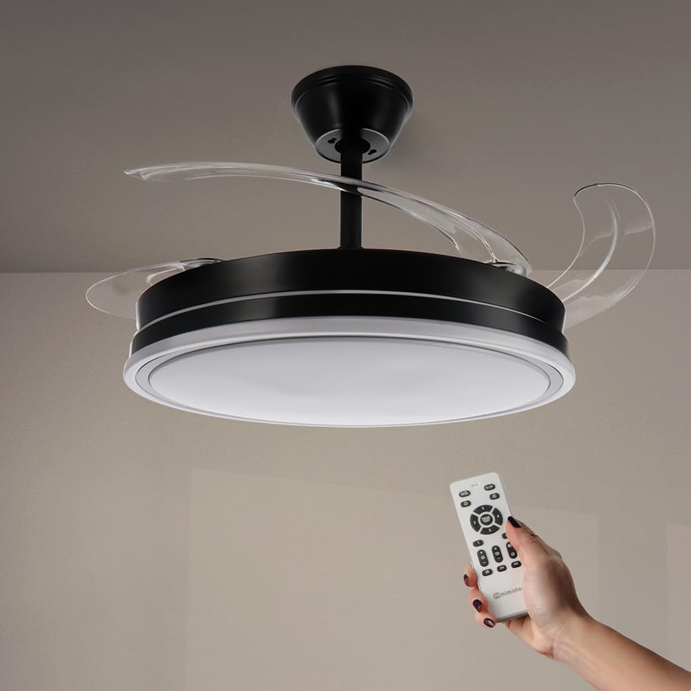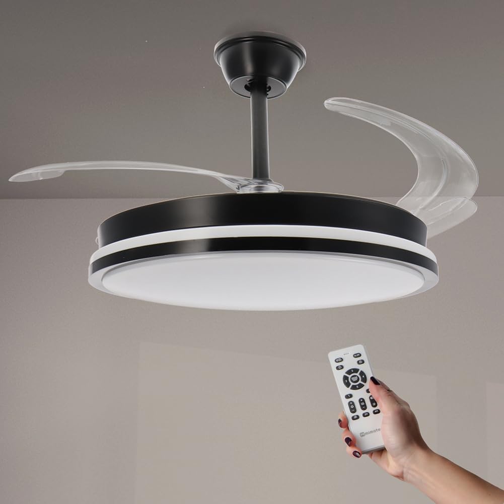 - « ✅ 【Ventilateur à pales rétractables】Grâce à ses pales rétractables nous pouvons cacher ses pales, de cette façon nous pouvons avoir un ventilateur plus décoratif en ayant la possibilité de les cacher, lorsque nous voulons utiliser le mode ventilateur, ses pales se déploieront pour que nous puissions profiter d’un moment agréable et frais.