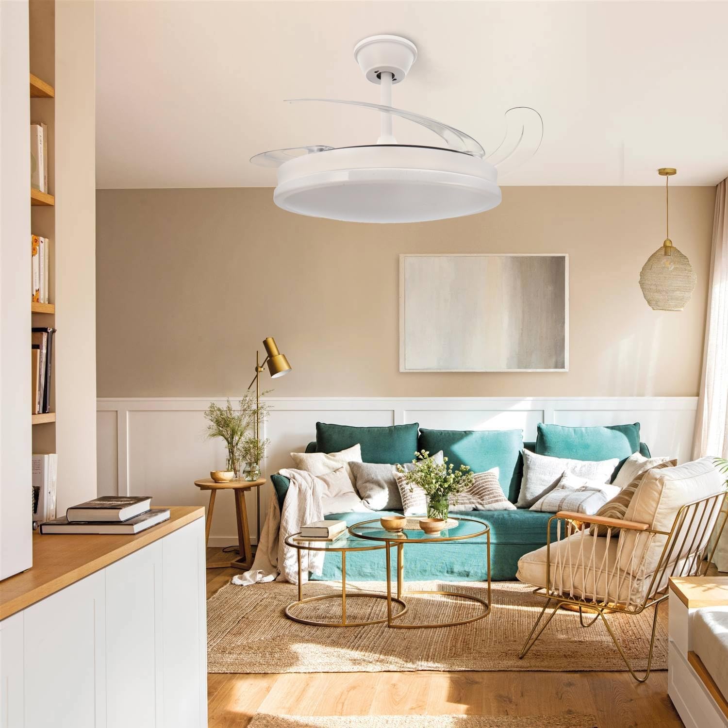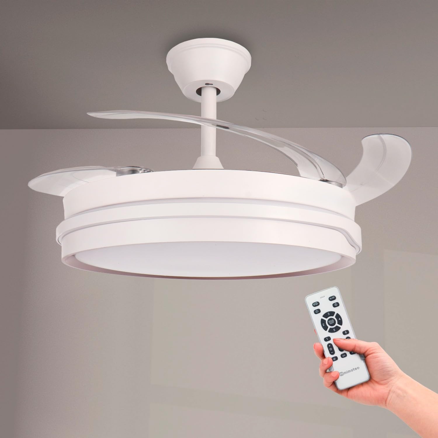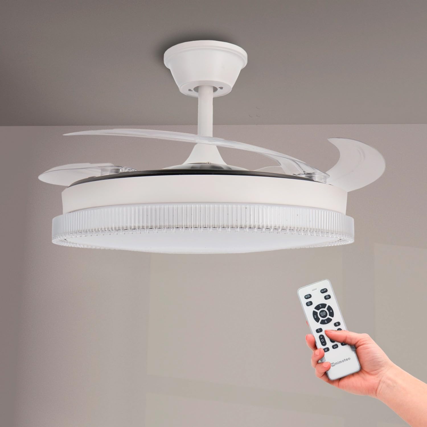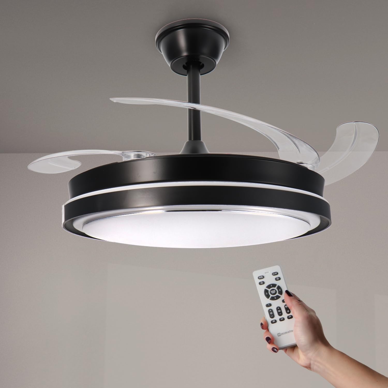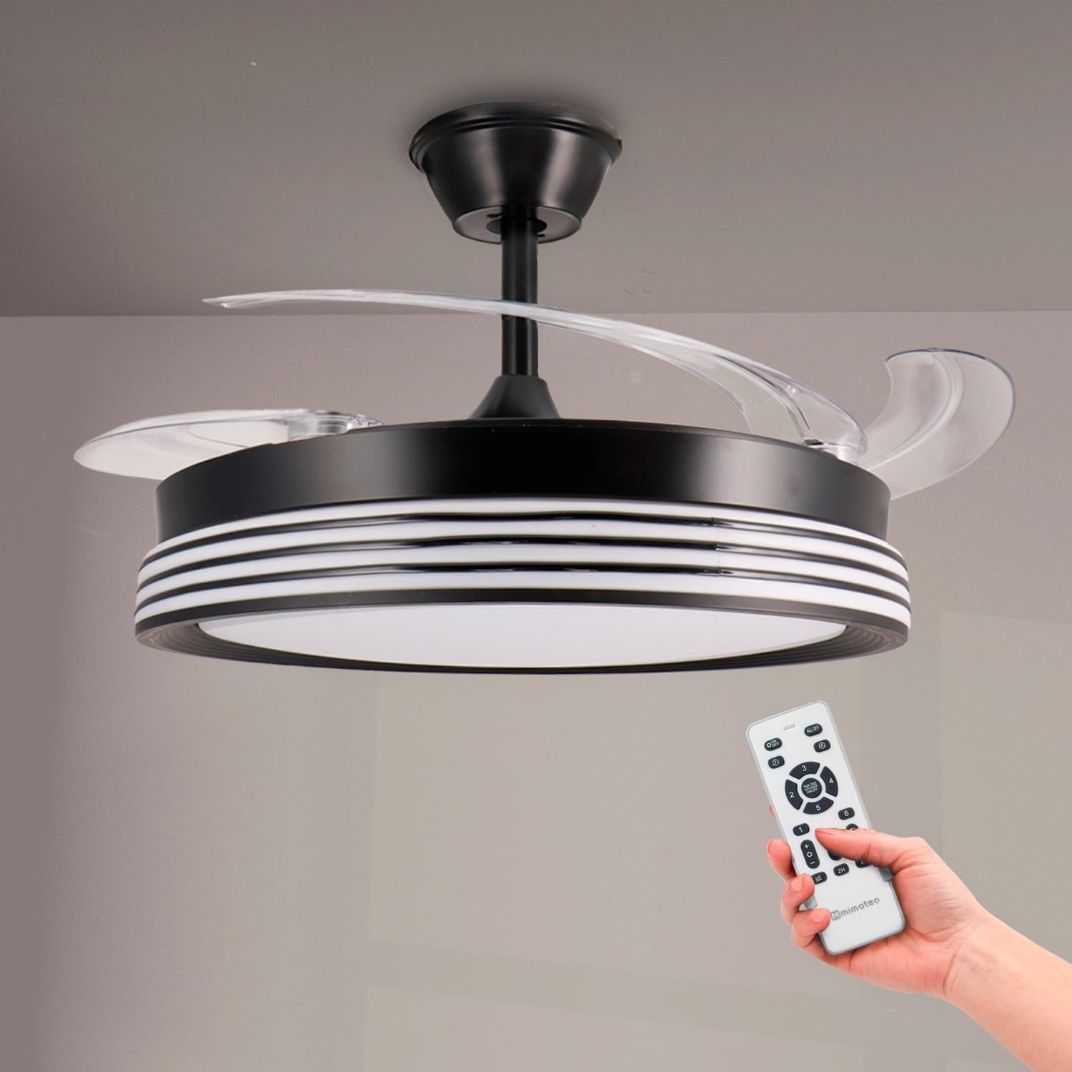 - « ✅ 【Ventilateur à pales rétractables】Grâce à ses pales rétractables nous pouvons cacher ses pales, de cette façon nous pouvons avoir un ventilateur plus décoratif en ayant la possibilité de les cacher, lorsque nous voulons utiliser le mode ventilateur, ses pales se déploieront pour que nous puissions profiter d’un moment agréable et frais.