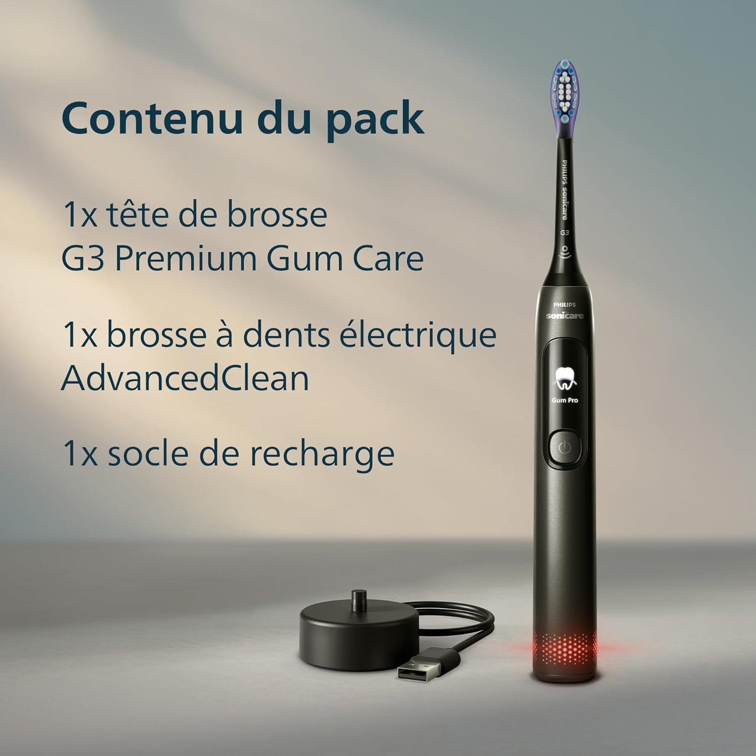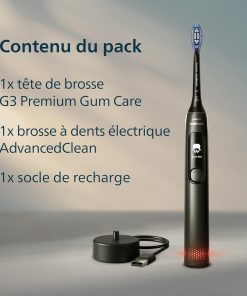 Brosse à dents électrique Philips Sonicare AdvancedClean série limitée – écran intelligent, capteur de pression, tête de brosse de rechange, 5 modes de brossage et SmarTimer, noir, modèle HX3792/11