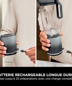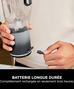 - BATTERIE RECHARGEABLE LONGUE DURÉE : une charge complète vous permet de faire 25 mixages, et de préparer vos boissons lors de vos déplacements