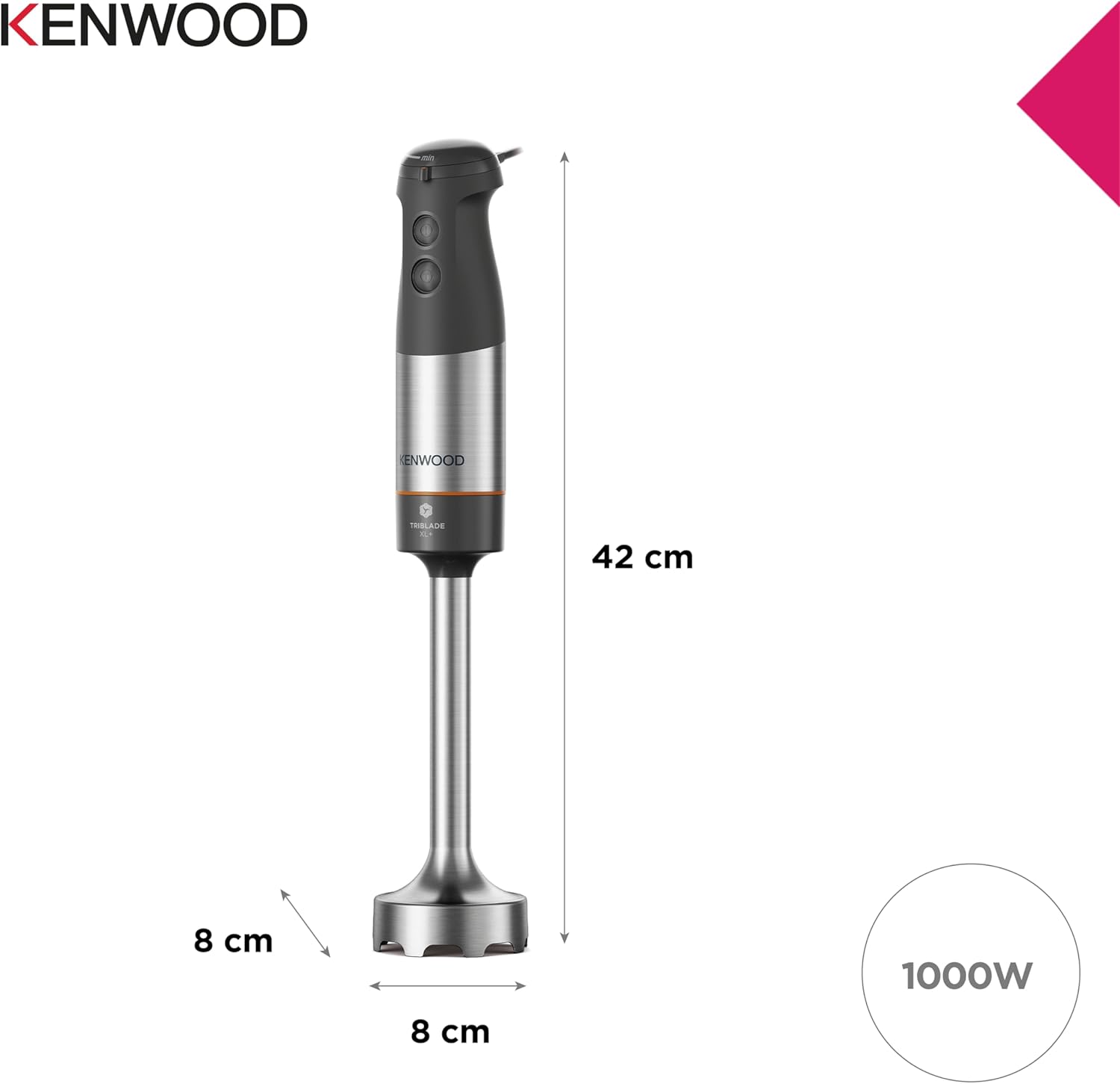 - Tige XL plus longue : la tige plus longue crée un meilleur mélange, un mélange puissant mais plus simple ; vous pouvez mélanger plus en une seule session. La tige en acier inoxydable de 20 cm est amovible et passe au lave-vaisselle.