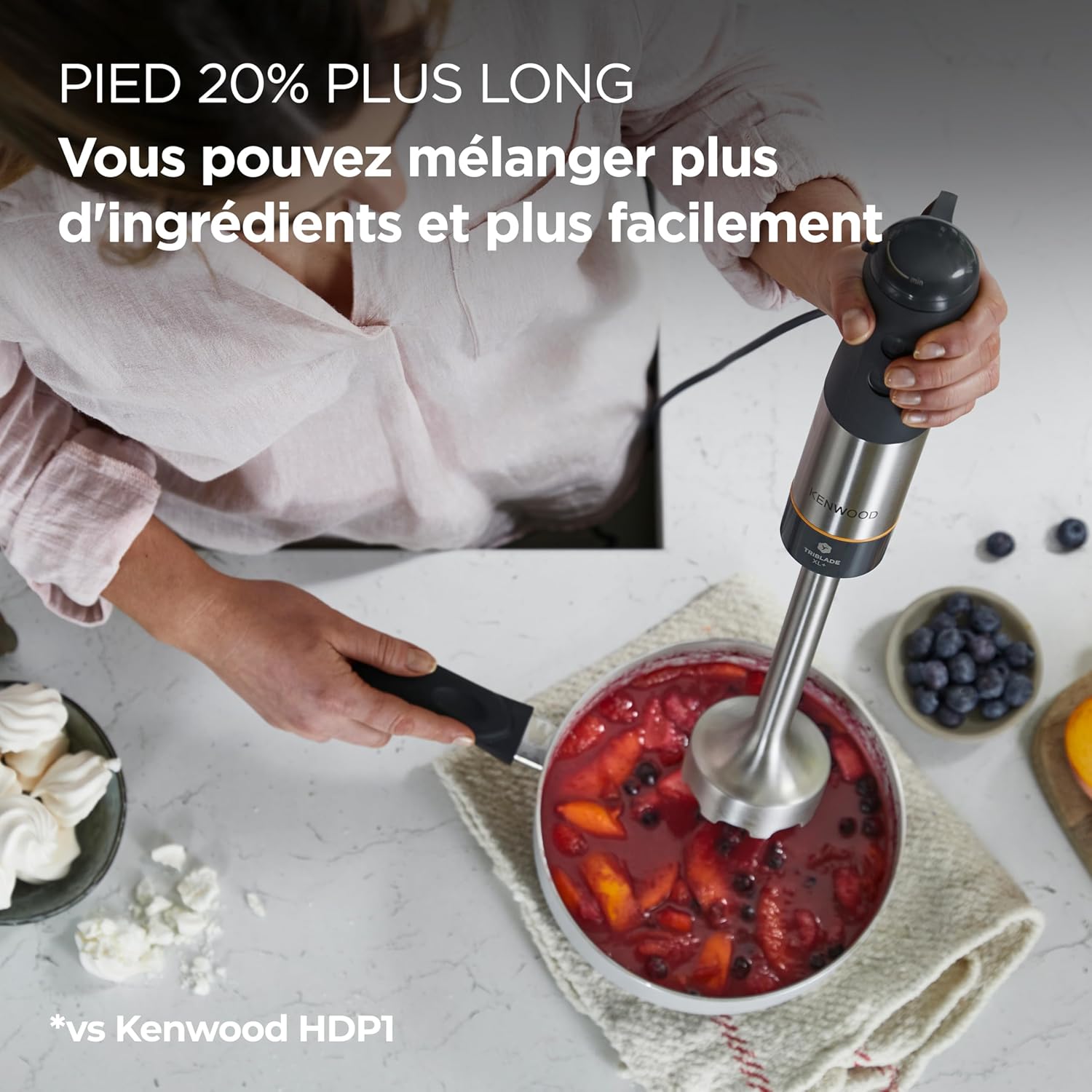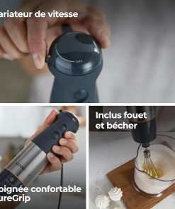 - Nouvelle prise en main : nos poignées sont conçues de façon ergonomique pour être douces et solides à tenir pendant l'utilisation. La poignée ergonomique rend le mixeur encore plus confortable à utiliser et le matériau Suregrip garantit une prise solide même avec les mains humides ou glissantes.