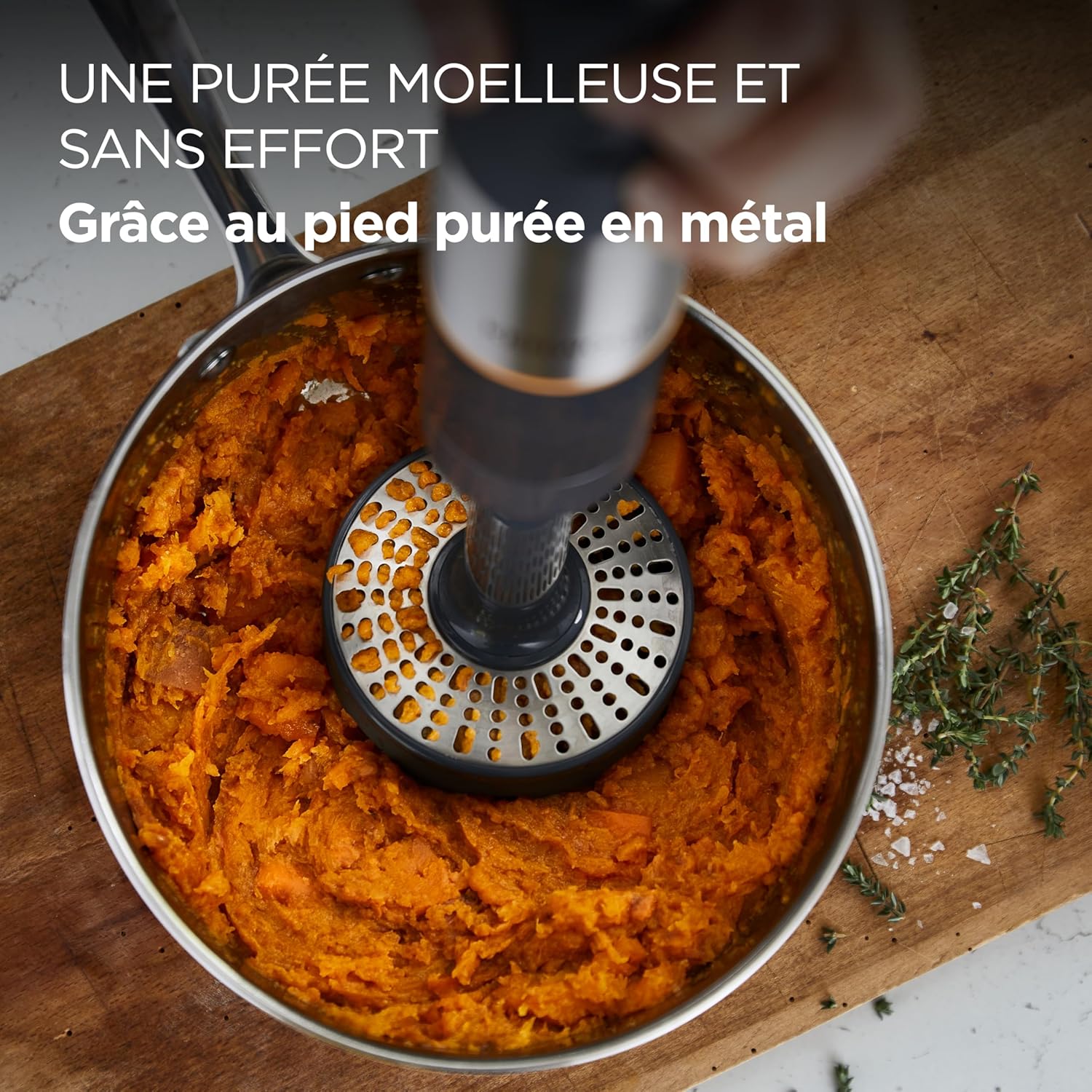 - Inclus : verre gradué de 0,75 L avec poignée, fouet à fil en acier inoxydable et presse-légumes en métal (2 tamis)