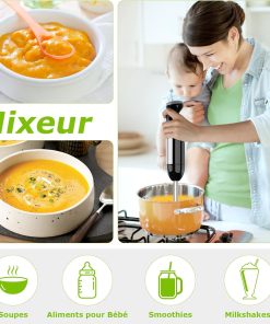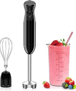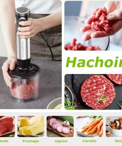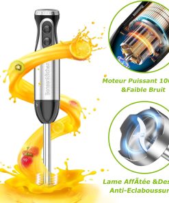 Bonsenkitchen Mixeur Plongeant, 4-en-1 Mixeur Plongeur Multifonction 1000W, 20 Vitesse Réglable, avec Fouet, Hachoir de 500ml et Verre Doseur 700 ml, Robot de Cuisine (HB3203)