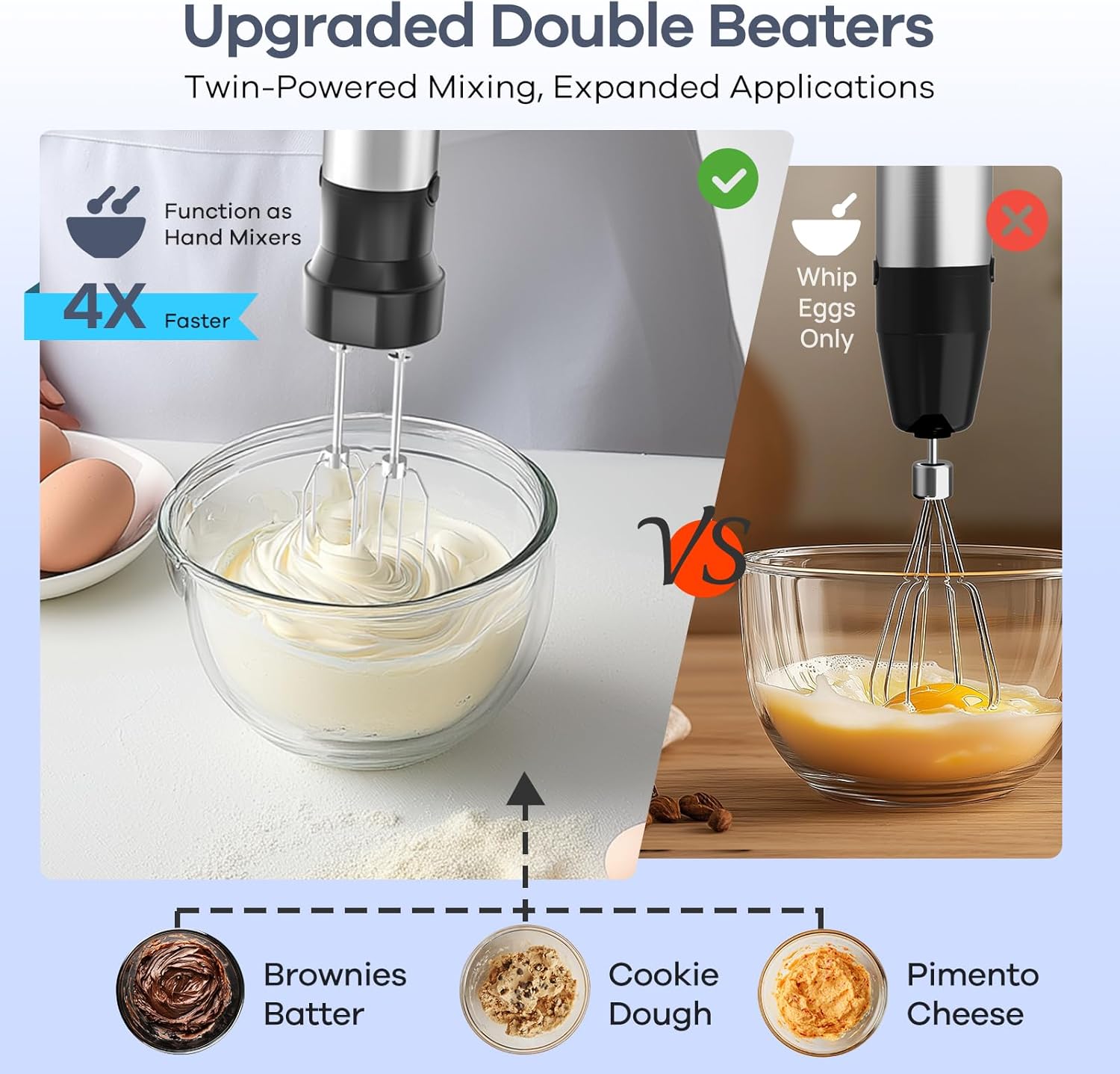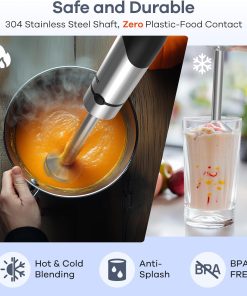 - 【Applications Polyvalentes】Idéal pour préparer rapidement et sans effort soupes, sauces, purées, crème fouettée et smoothies. Un allié indispensable en cuisine.