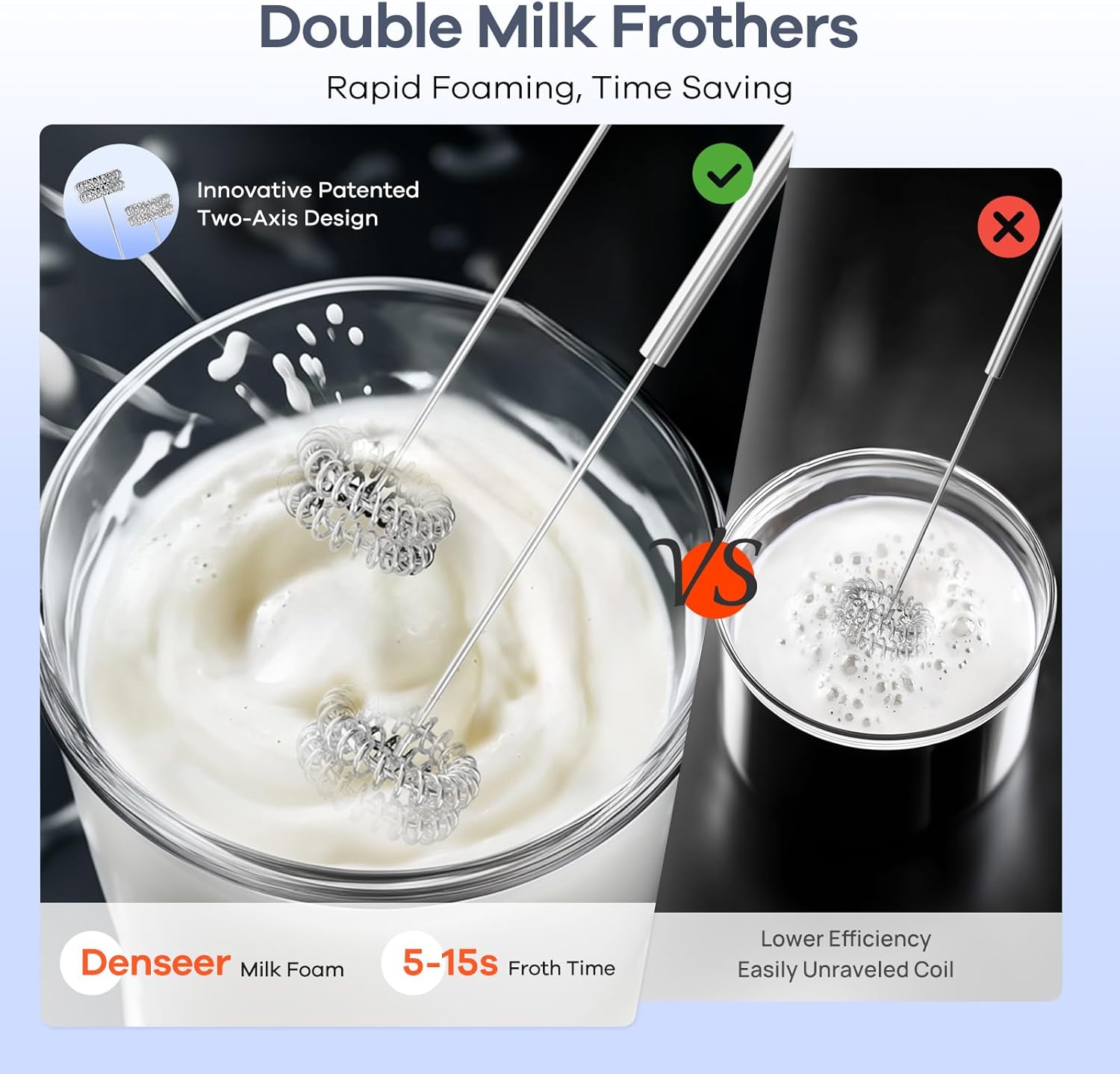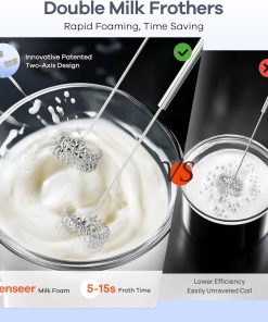 - 【Efficacité Supérieure】Le mousseur à double tige breveté fouette le lait jusqu’à 6× plus vite qu’un modèle simple, pour une mousse fine et onctueuse en un instant. Il quadruple aussi la vitesse de préparation de la crème fouettée, ne raye pas les récipients et convient pour mélanger pâtes, sauces et autres préparations.