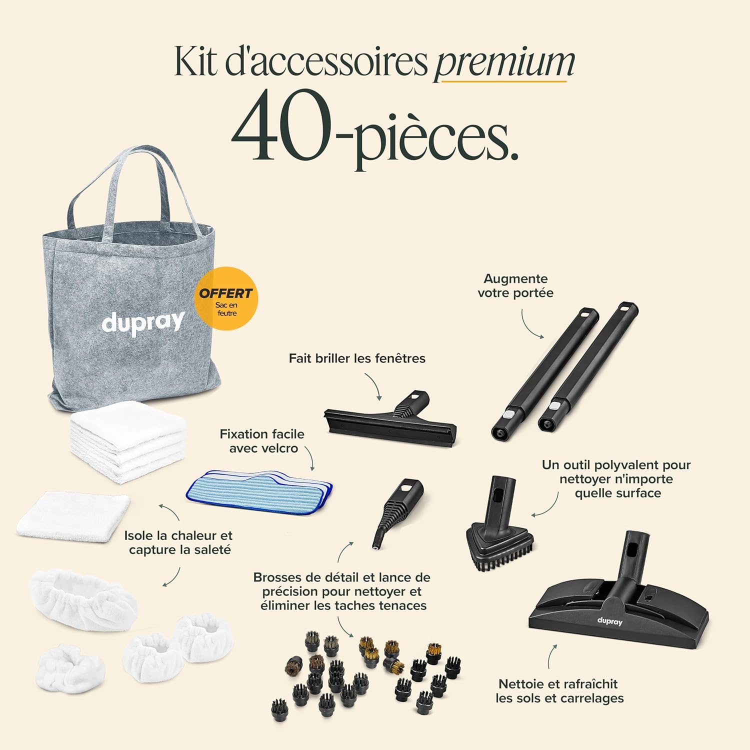 Dupray Neat Plus – Nettoyeur Vapeur Polyvalent Haute Performance avec 40 Accessoires Inclus pour Sols, Carrelage, Joints, Tapis, Canapés, Maison et Plus (Neat Plus + 40 pieces)