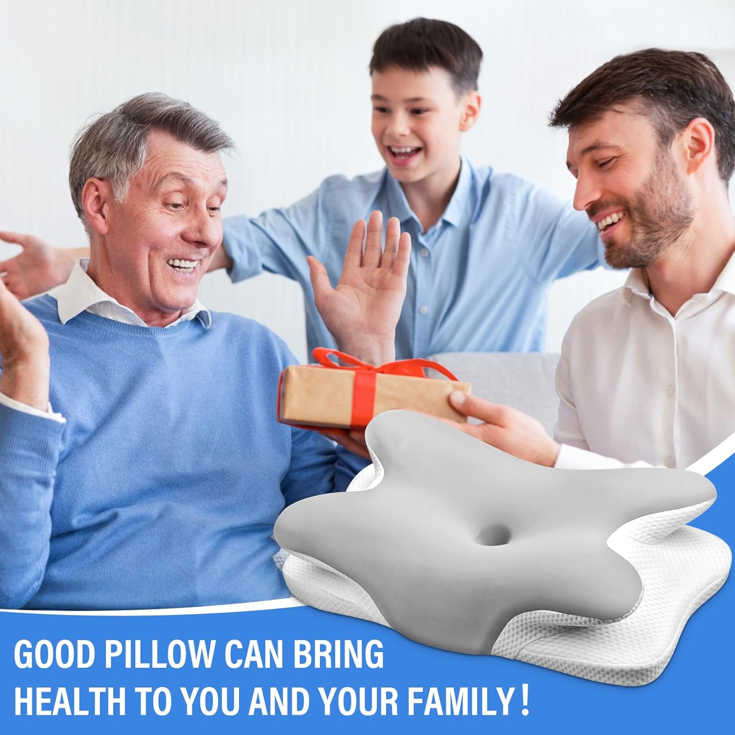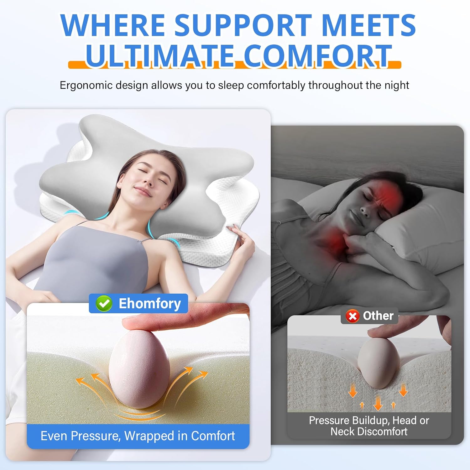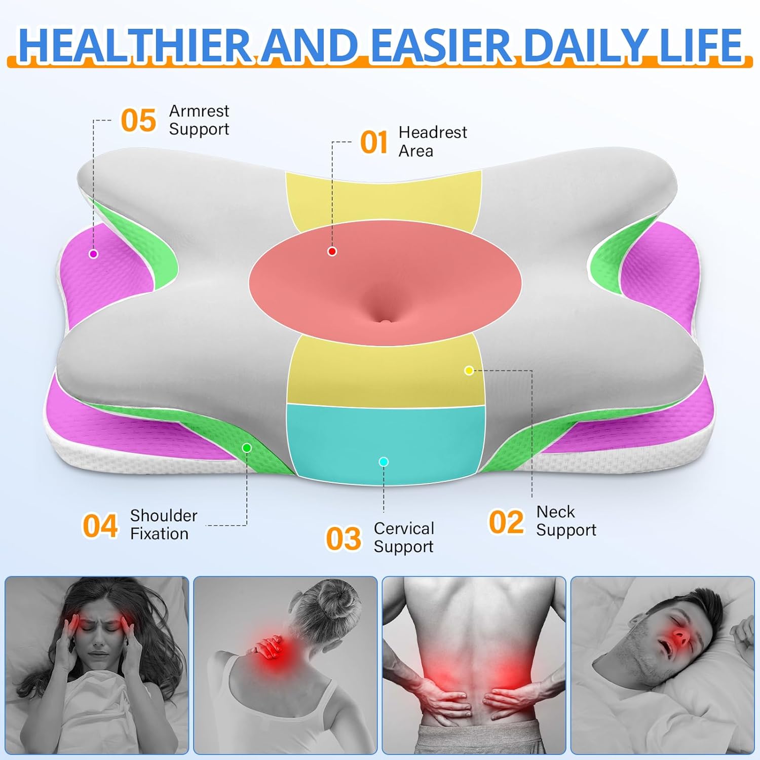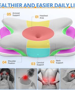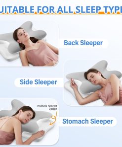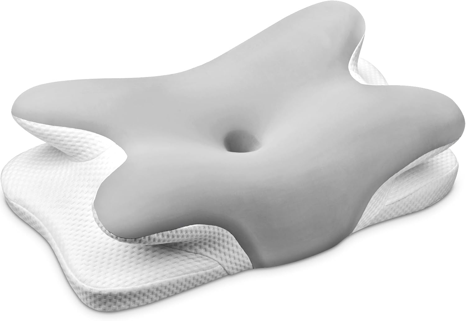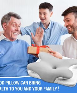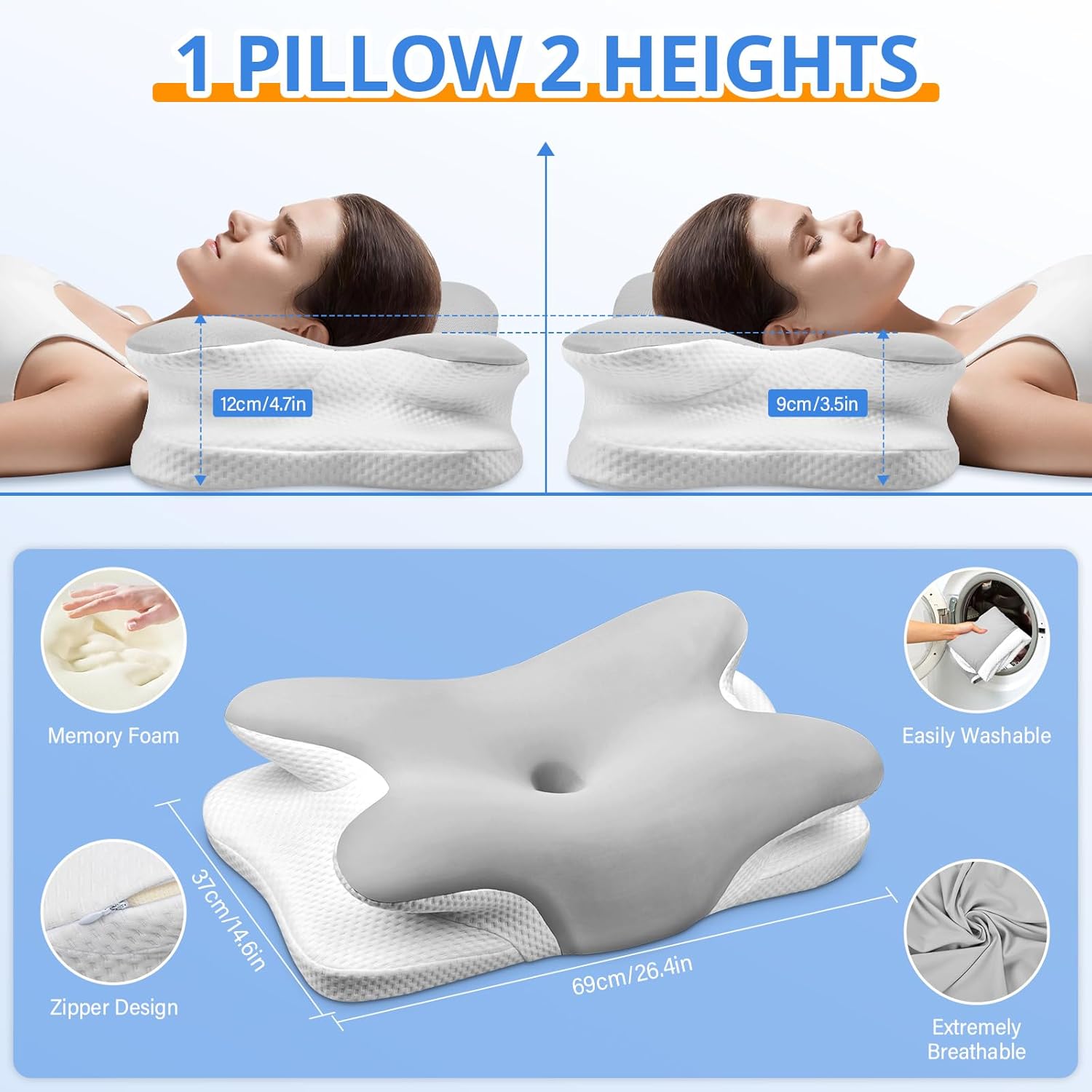 Oreiller Ergonomique Cervical, 2 en 1 Oreiller Memoire Forme pour la Nuque, pour Dormir sur Le côté, Le Dos et Le Ventre, 67 x 37 x 9/12cm (Argent)