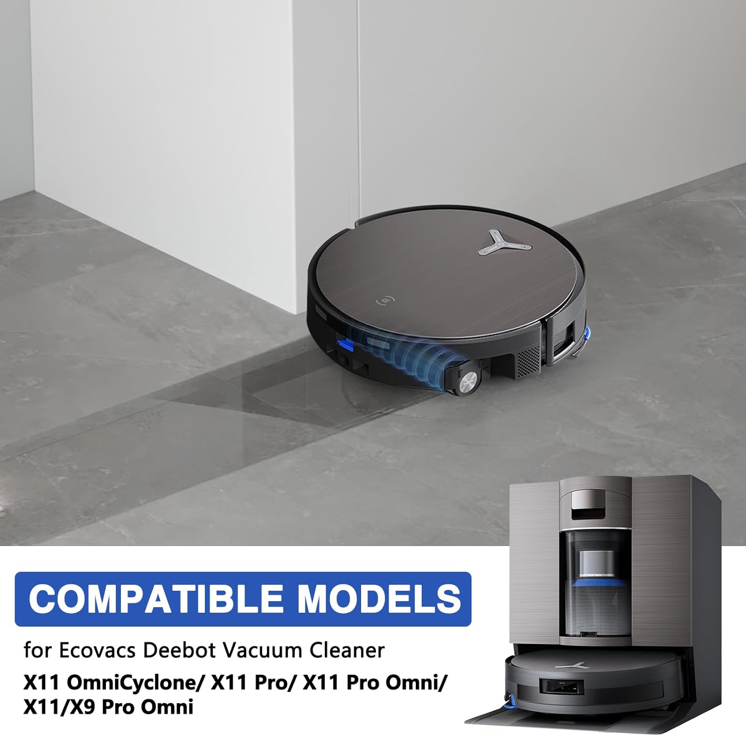 - Modèles compatibles : accessoires pour Ecovacs Deebot X11 OmniCyclone/ X11 Pro Omni/ X11 Pro/ X11/ X9 Pro Omni aspirateurs robots. Veuillez vérifier le modèle de votre appareil avant d’acheter