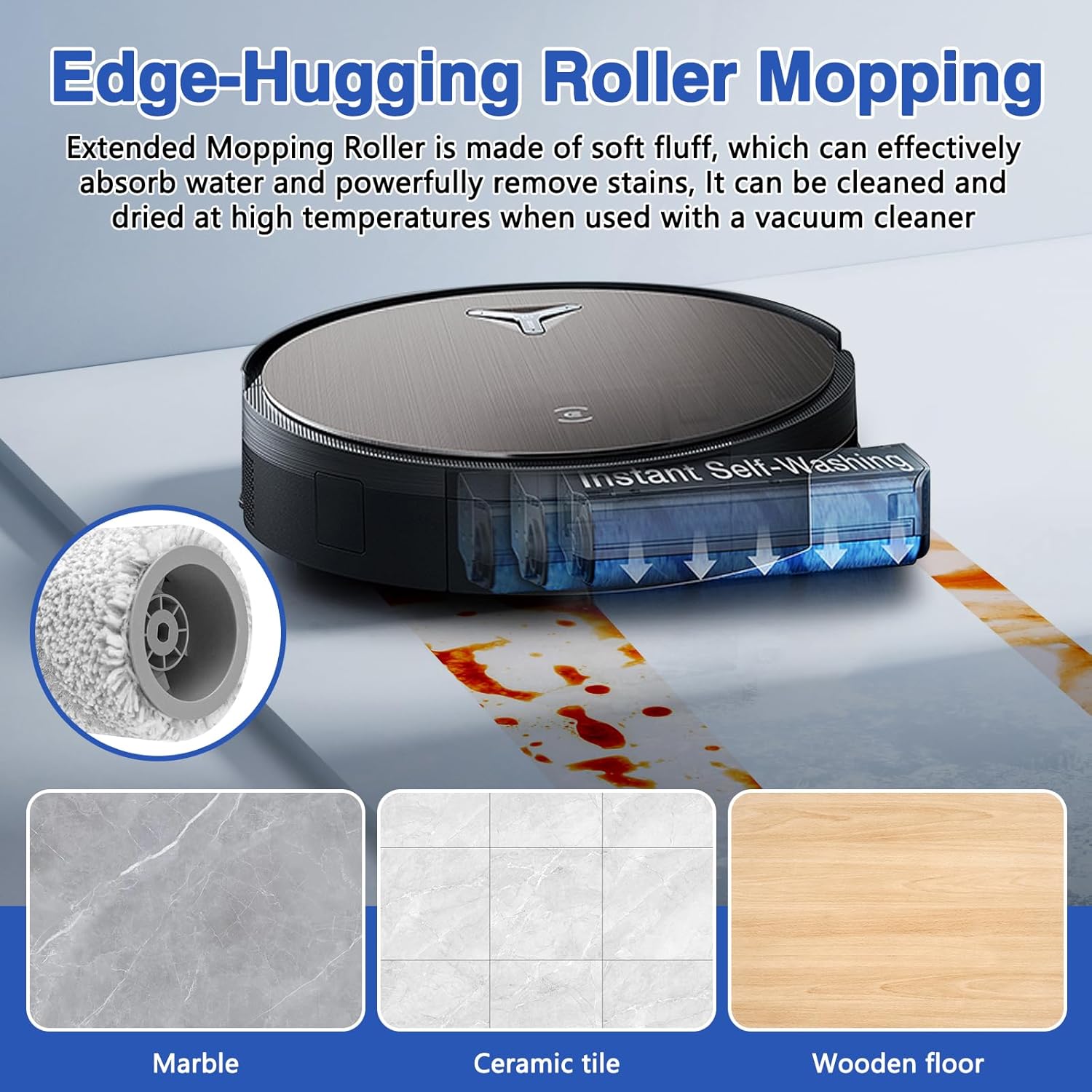 - Balai à rouleau : le balai à rouleau X11 OmniCyclone possède une forte capacité d’absorption d’eau, ce qui lui permet de nettoyer une plus grande surface et d’éliminer facilement les taches tenaces. Le balai peut également être nettoyé à une température de l’eau pouvant atteindre 75 °C
