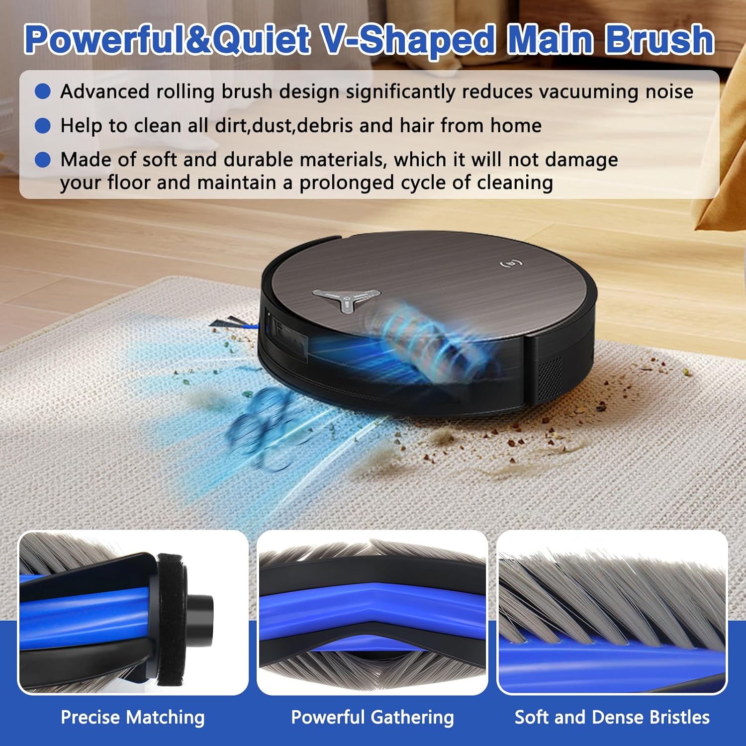 - Sans enchevêtrement : la brosse principale du X11 Pro Omni est dotée d’une conception anti-enchevêtrement qui évite pratiquement tout enchevêtrement, même avec des cheveux longs, ce qui est idéal pour les animaux domestiques et les maisons très fréquentées. La brosse latérale peut atteindre les coins et les zones difficiles d’accès pour un nettoyage complet