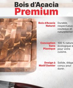 - DURABLE & ÉCOLOGIQUE: Fabriquée en bois d'acacia dense, cette planche à découper durable et résistante à l'humidité est certifiée FSC et sans plastique, offrant un choix écoresponsable sans compromis sur la qualité ou le design.