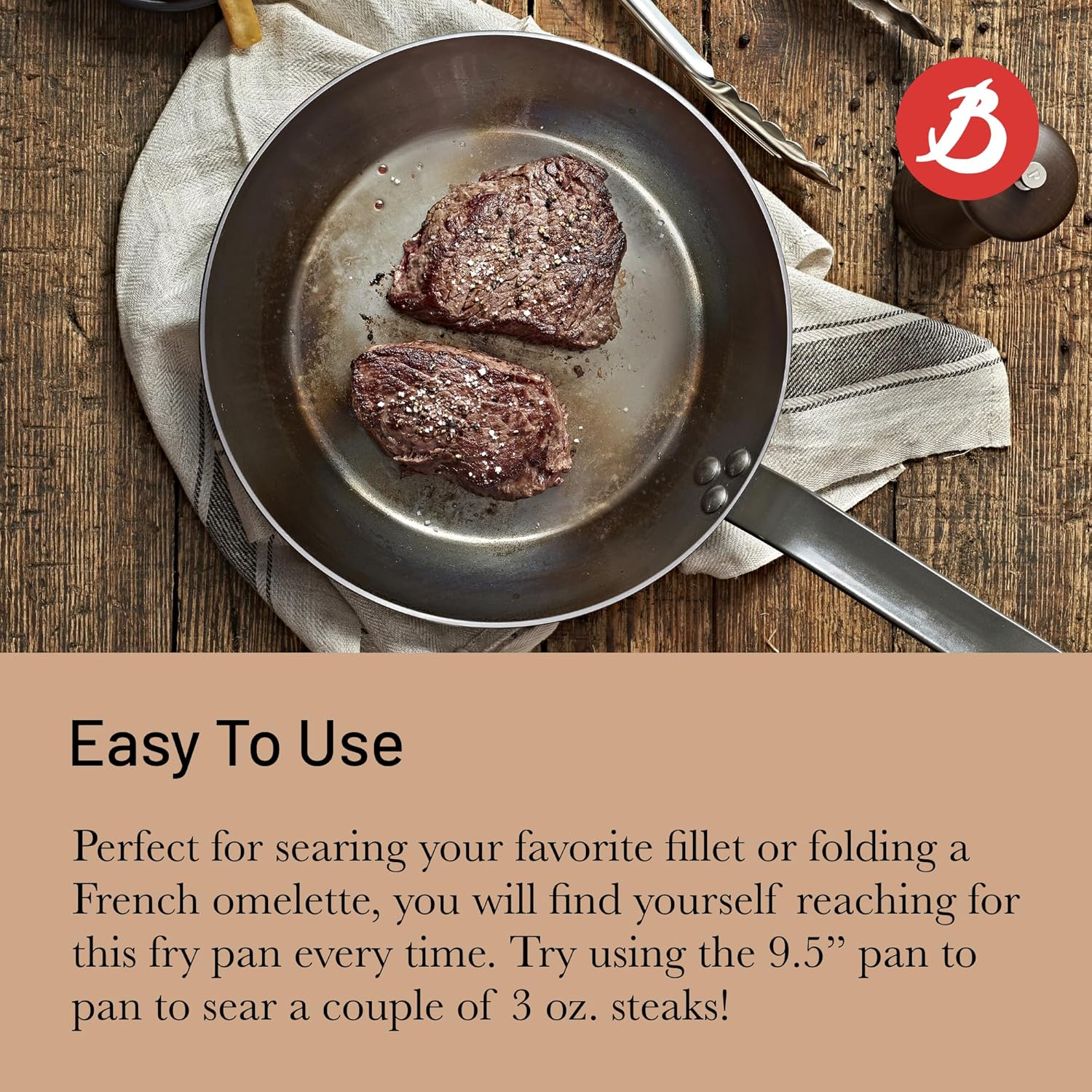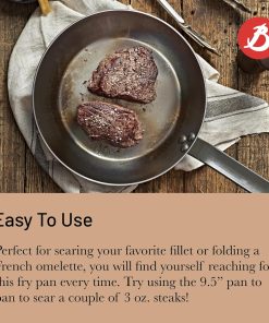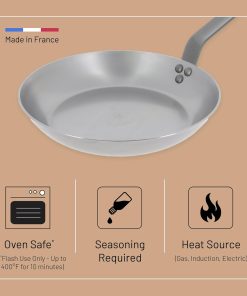 - ANTIADHÉRENCE NATURELLE : Revêtue d'une cire d'abeille lui offrant une protection temporaire contre l'oxydation, la poêle en acier MINERAL B De Buyer a un effet antiadhésif naturel. Un culottage est nécessaire à la première utilisation et l'effet anti-adhérent s'améliore progressivement.