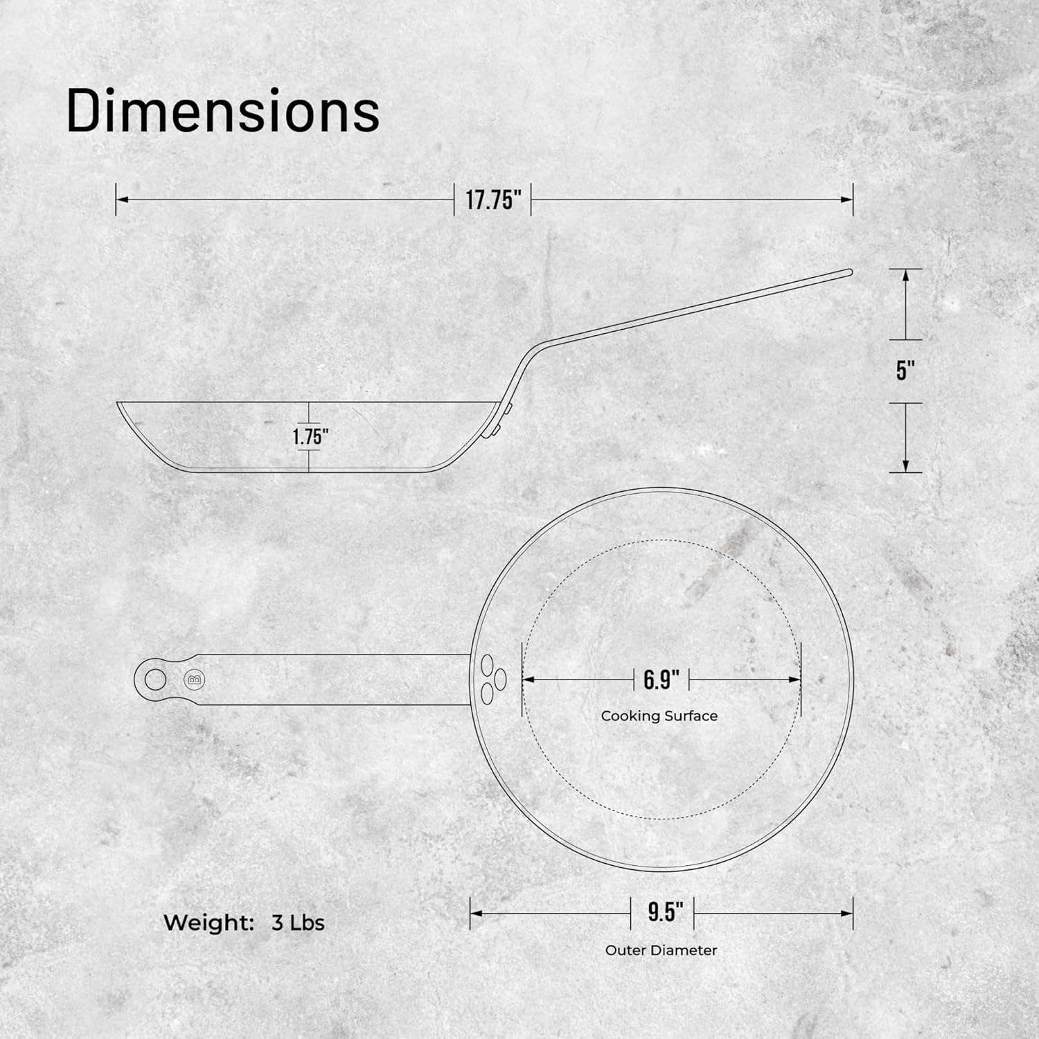 - SURFACE DE CUISSON : Le diamètre extérieur de cette poêle MINERAL B De Buyer est de 24 cm, sa surface intérieure utile est, quant à elle, de 17,5 cm.