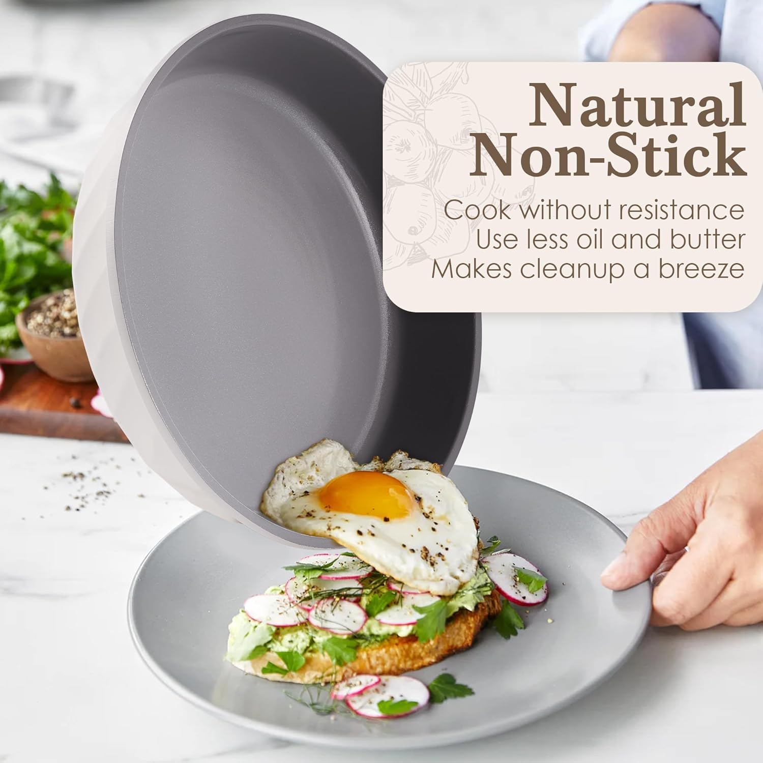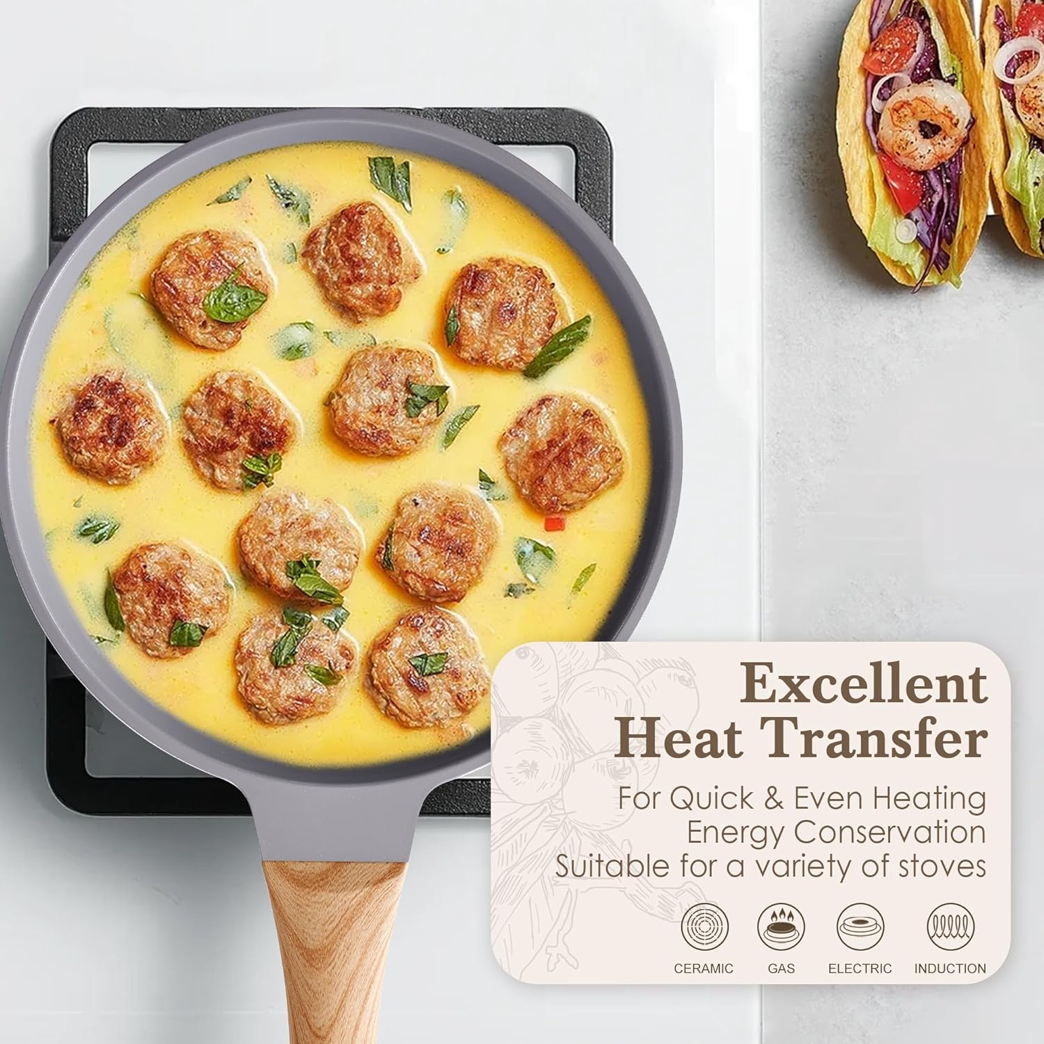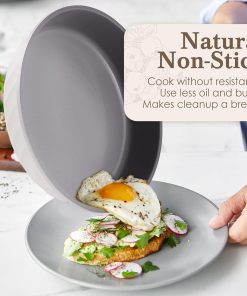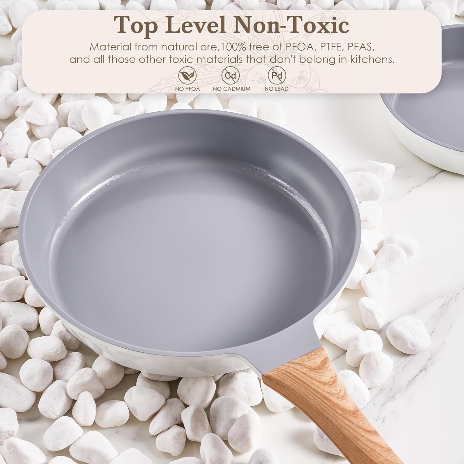 RIOVARM Céramique Antiadhésif Sets de poêles avec couvercles Induction Batteries de cuisine 20 cm 24 cm 28 cm Poêles à omelette sans PFOA Poêles à oeufs avec poignées en bakélite grain de bois