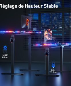 - 【Élévation Electrique Mémoire】 Cette bureau electrique gaming a été entièrement améliorée, avec une hauteur réglable entre 70,5 et 113 cm. Elle est également équipée de 3 boutons mémoire, vous permettant de définir 3 hauteurs courantes en fonction de vos habitudes ou de celles de votre famille. Il vous suffit ensuite d’appuyer légèrement sur le bouton pour ajuster la hauteur à la position souhaitée. Le processus de levée et d’abaissement est fluide et stable, avec un niveau de bruit inférieur à 45 décibels, sans déranger les autres personnes autour de vous, offrant ainsi une expérience d’utilisation plus confortable.