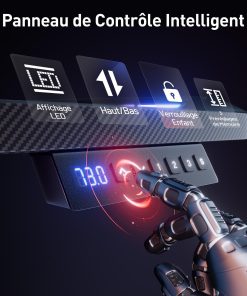 Ce bureau électrique HLFURNIEU 140 x 60 cm offre un réglage de hauteur fluide avec trois mémoires pratiques, une large surface effet fibre de carbone et un design sobre. L’assemblage est raisonnablement simple, la table reste stable en position assise et debout et les commandes sont intuitives, ce qui en fait un bon choix pour le gaming ou le télétravail.