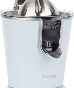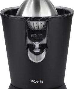 Préparez facilement des jus d'agrumes frais, riches en vitamines, grâce au presse-agrumes électrique H.Koenig AGR88. Doté d’un moteur performant et d’un bras articulé professionnel, il vous permet d'extraire un maximum de jus sans effort, que ce soit pour des oranges, citrons, pamplemousses ou mandarines. Extraction efficace et rapide : le bras articulé et le cône universel s’adaptent à tous types d’agrumes pour un rendement optimal. Design élégant en inox : s’intègre parfaitement dans toutes les cuisines modernes. Bec verseur anti-gouttes : versez votre jus directement dans le verre sans éclaboussure ni gaspillage. Facile à nettoyer : pièces démontables compatibles lave-vaisselle pour un entretien sans contrainte. Compact et robuste : idéal pour un usage quotidien à la maison. Commencez chaque journée avec un jus frais et vitaminé grâce au presse-agrumes H.Koenig AGR88, l’allié incontournable pour des petits-déjeuners sains et gourmands. Bénéficiez d’une garantie 2 ans et d'une disponibilité des pièces détachées pendant 10 ans pour une utilisation durable en toute confiance.