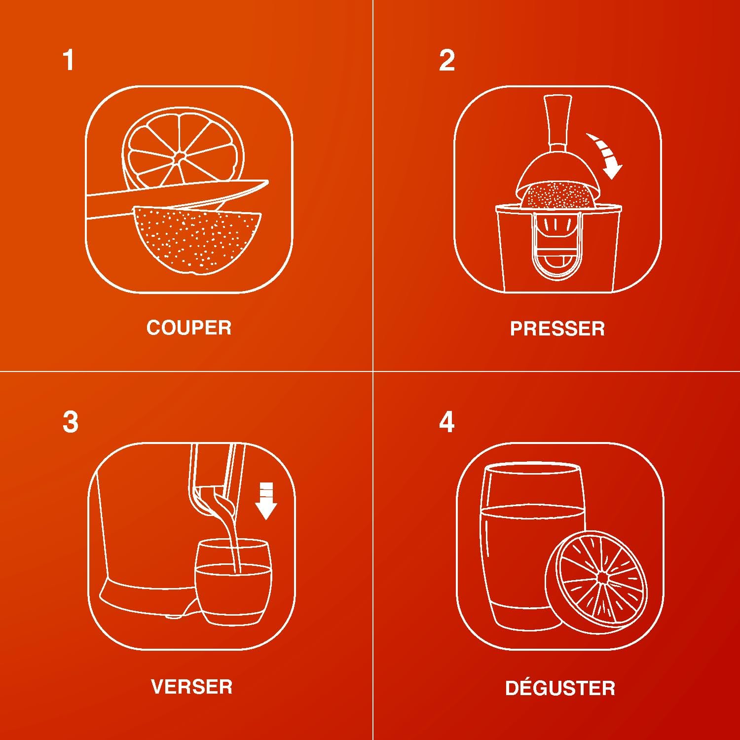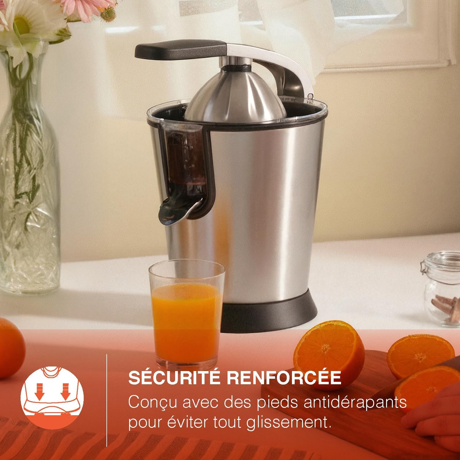 - EXTRACTION EFFICACE DU JUS: Grâce à son bras articulé puissant et ses 160W, ce presse-agrumes électrique extrait un maximum de jus de vos agrumes rapidement et sans effort.