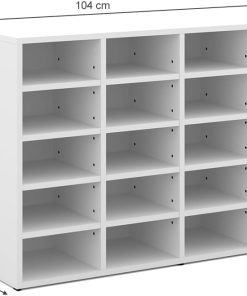 Armoire à chaussures simple et pratique, le blanc est sobre et s’intègre bien, les dimensions 104 x 66 cm offrent un bon rangement pour plusieurs paires sans prendre trop de place, le montage est intuitif et la structure paraît solide pour un usage quotidien, bon rapport qualité-prix.