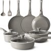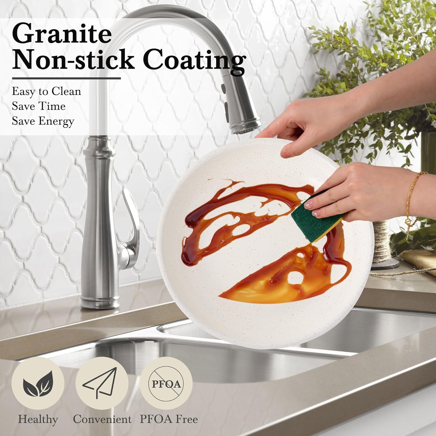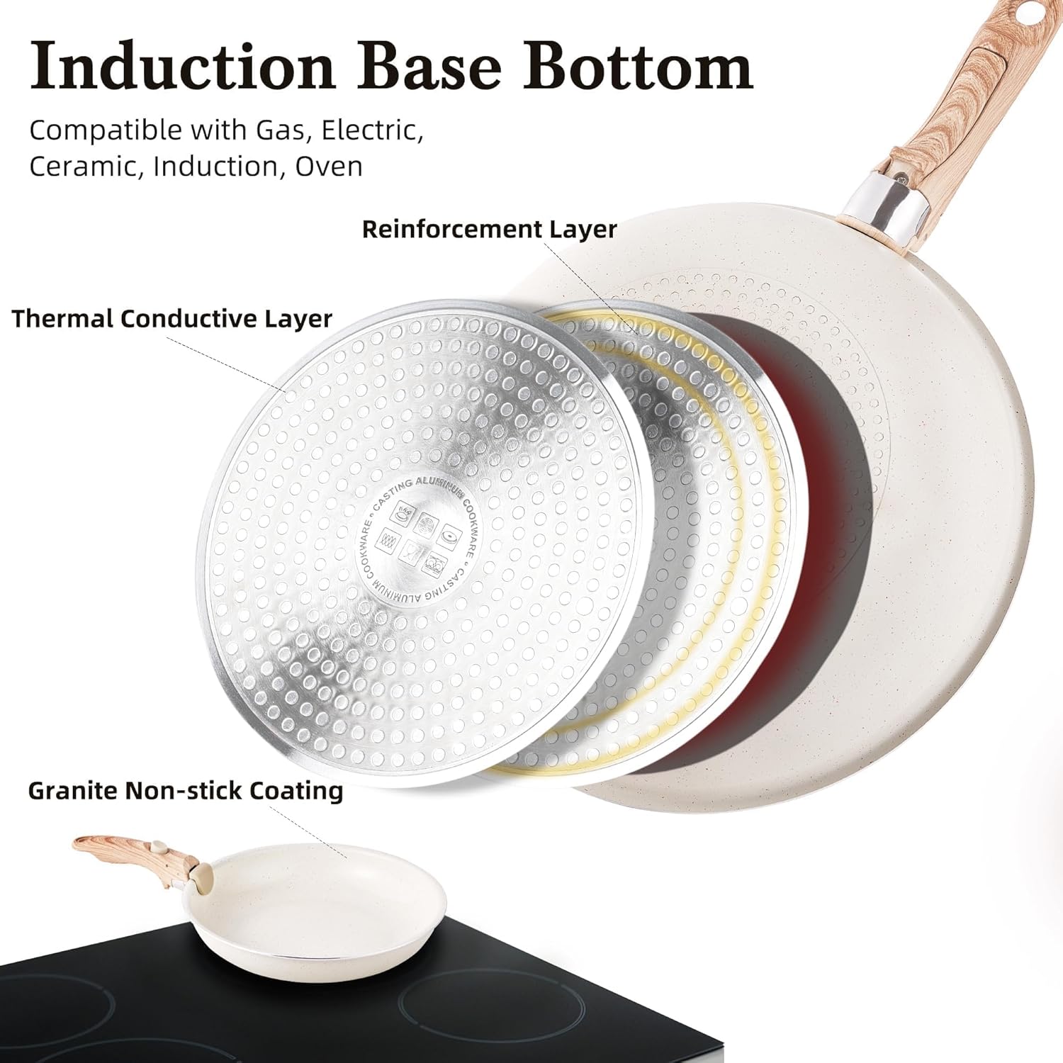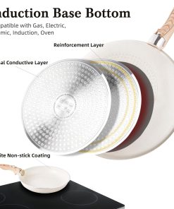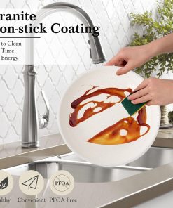 - 💎【Granit antiadhésif】 L’alliage d’aluminium, doté d’une excellente conductivité thermique, constitue le matériau de base. Le revêtement antiadhésif en granit recouvre l’intérieur et l’extérieur de l’ustensile de cuisine. (Sans PTFE, PFOA, PFAS, plomb, cadmium et autres matériaux toxiques)
