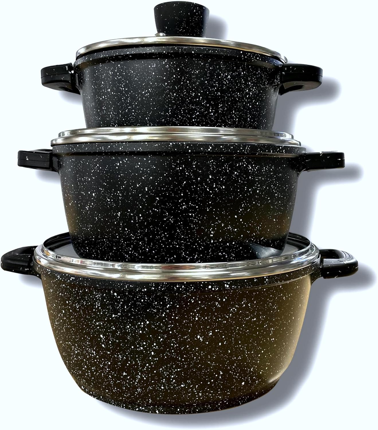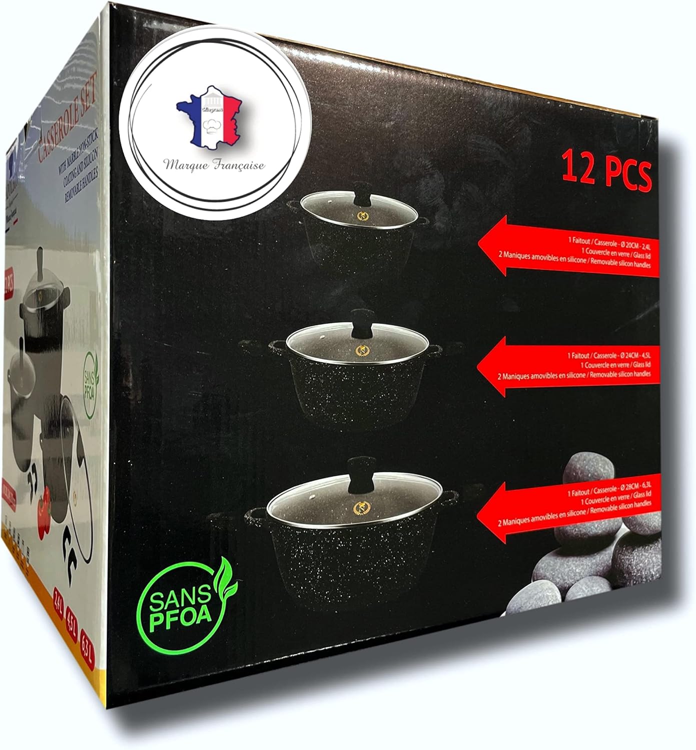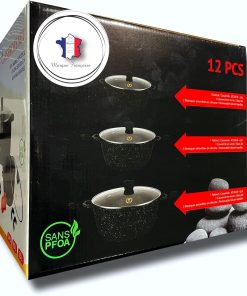 France Lot de 3 faitouts marmites 20cm 24cm et 28cm revêtement Céramique anti-adhésif de haute qualité tous feux dont induction sans PFOA (Façon Pierre)