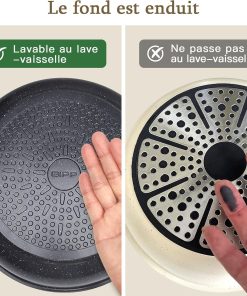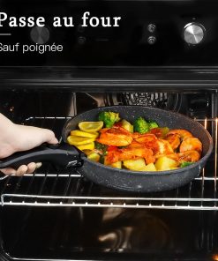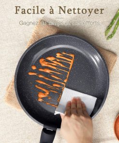 - REVÊTEMENT EN GRANIT SAIN Le revêtement antiadhésif naturel est non toxique et 100 % sans PFOA. Une quantité minimale d’huile suffit pour cuisiner, ce qui est idéal pour une cuisine saine.