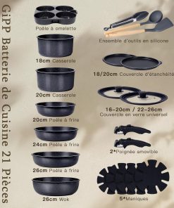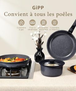 Très bon set de casseroles GiPP : la poignée amovible est astucieuse, le revêtement en céramique est vraiment antiadhésif et se nettoie facilement, la chauffe est homogène sur l’induction et elles vont au four sans problème — solide et pratique pour un usage quotidien.