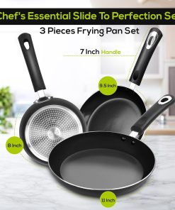 - Lot de 3 poêles : le set de poêles 3 pièces comprend une poêle de 20 cm, une poêle de 24 cm et une de 28 cm, qui répond aux différents besoins de cuisson de vous et de votre famille.