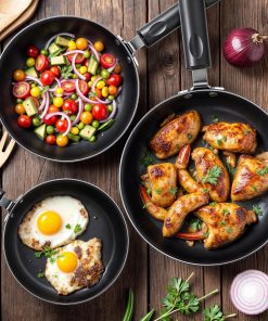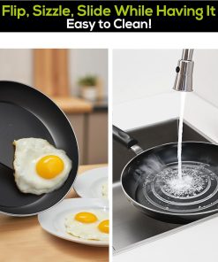 - Anti-adhésif : les poêles ont un revêtement antiadhésif à double couche de haute qualité qui facilite la cuisson et le nettoyage ; sans PFOA, sans plomb et sans cadmium.