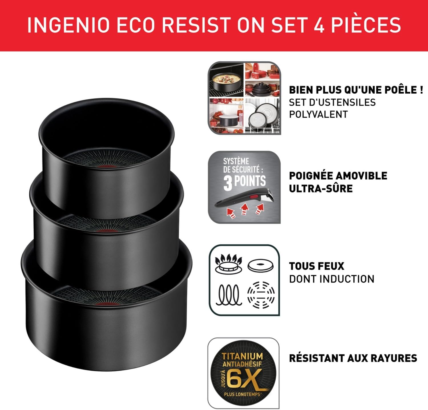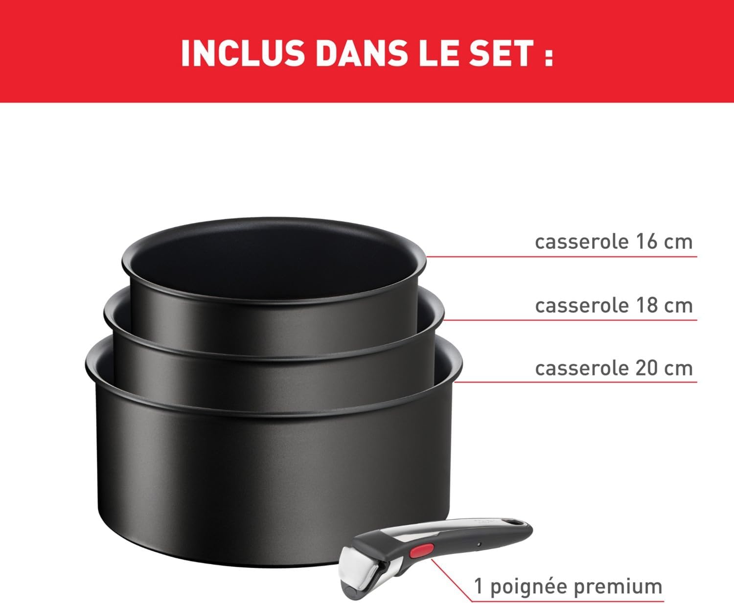 - CONTENU : casseroles 16/18/20 cm et poignée amovible